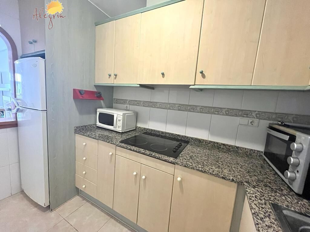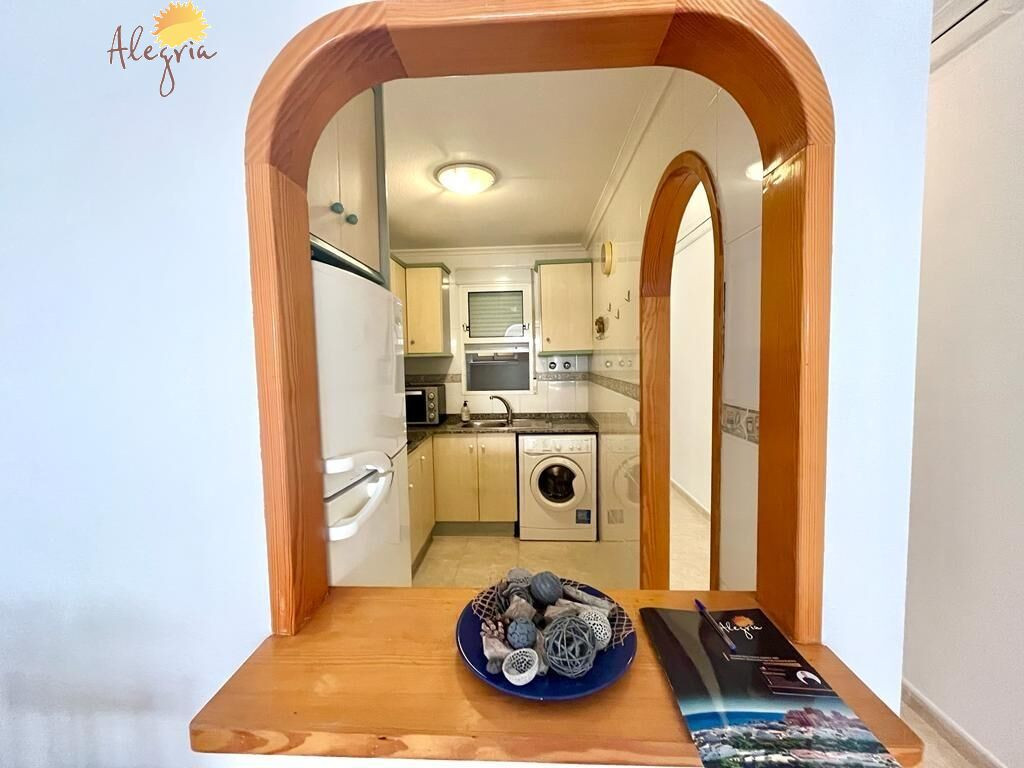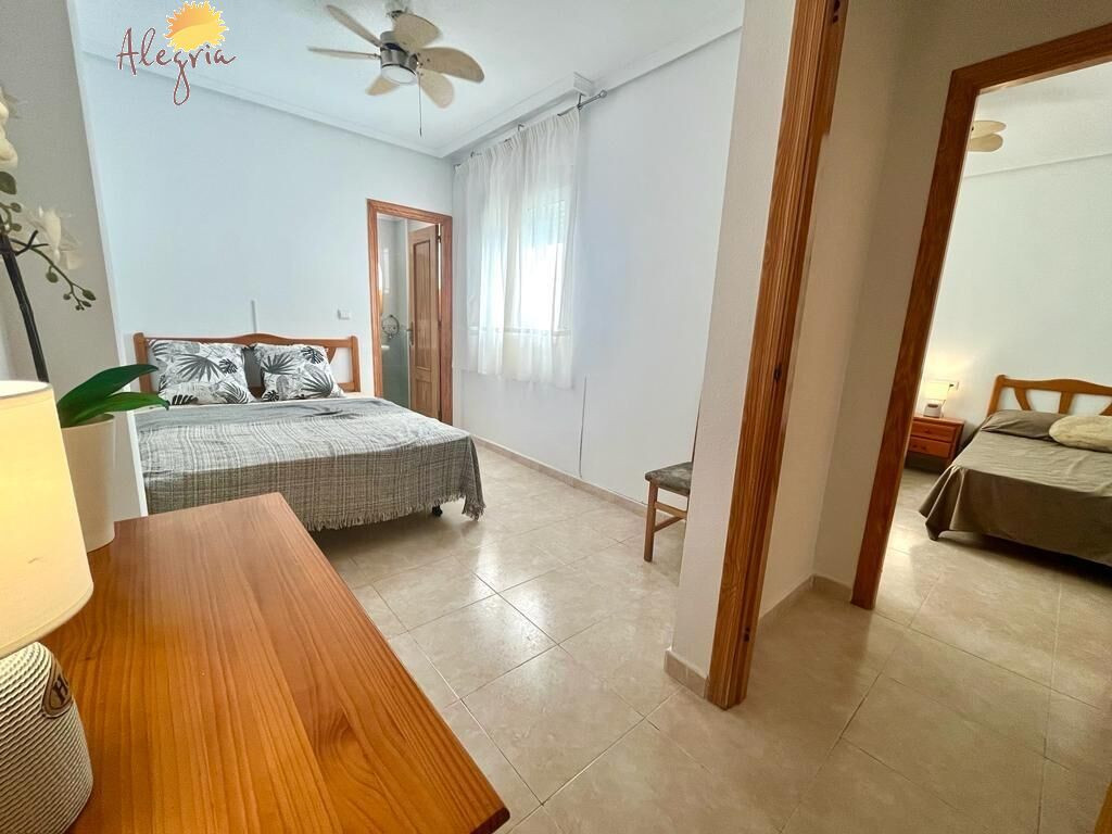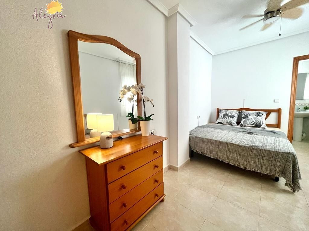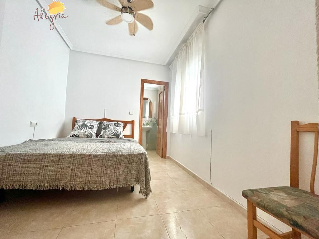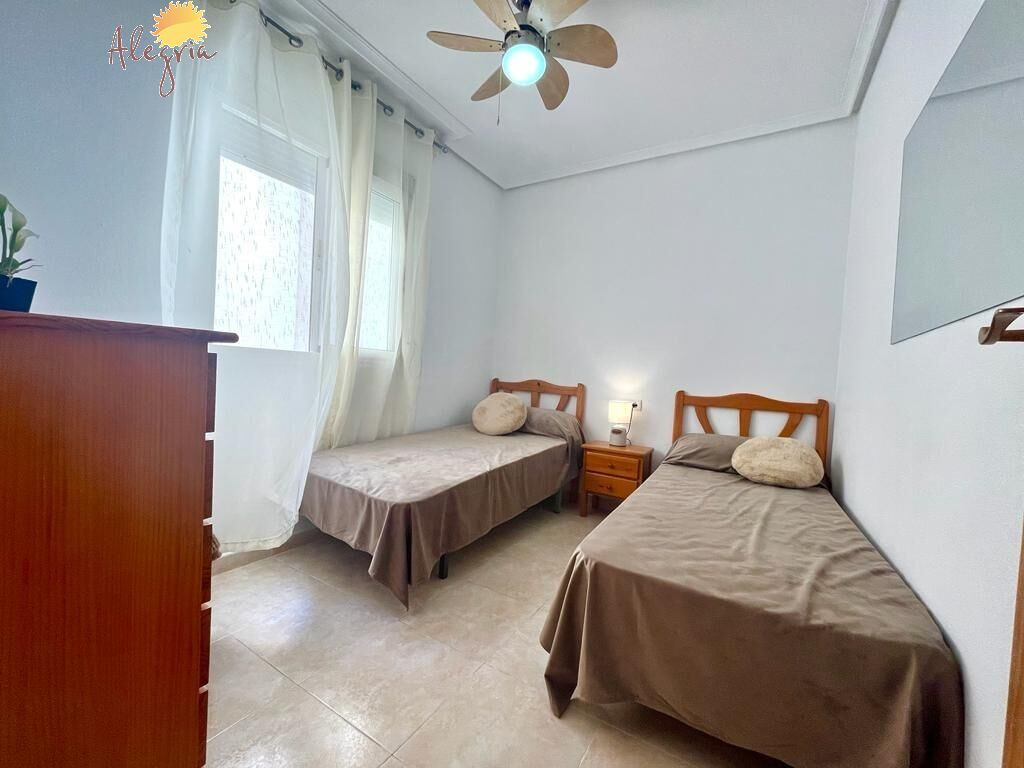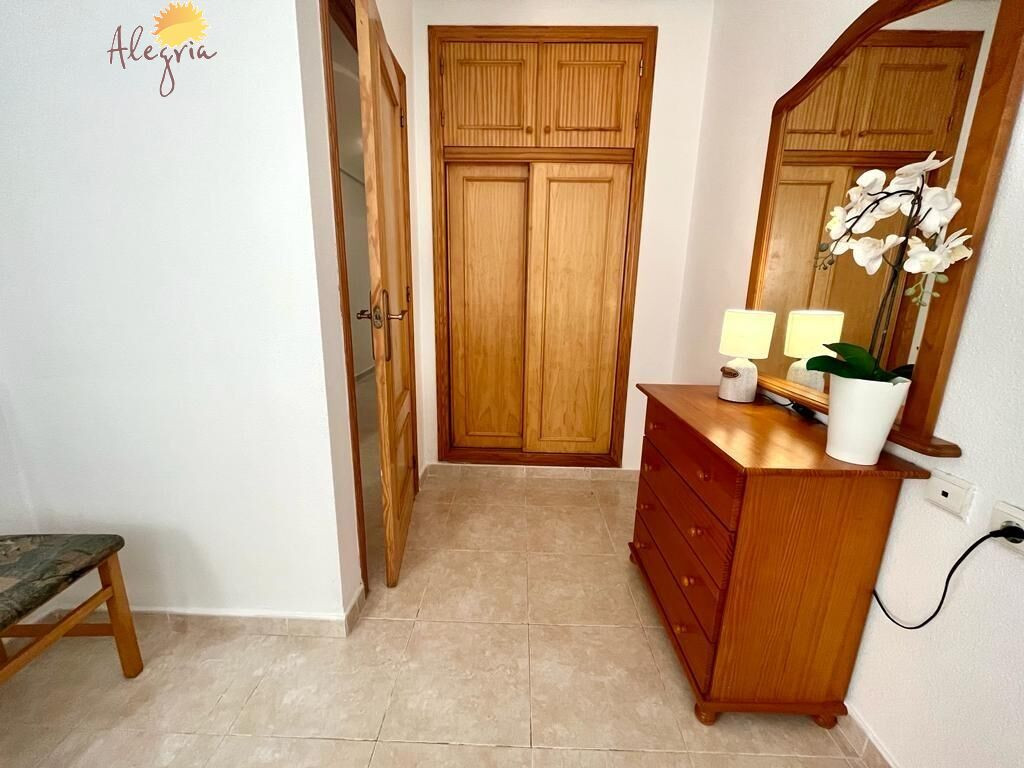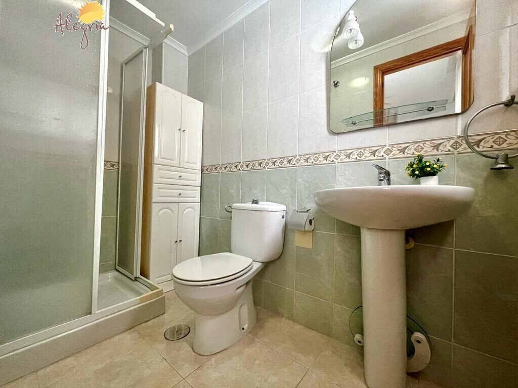 Apartment in Torrevieja, Playa de los locos area, 89 m2. surface, 100 m. from the beach (1 minute walk from the beach), a double room and a single room, 2 bathrooms, property in good condition, equipped kitchen, pine interior carpentry, east facing, porcelain stoneware floor, aluminum exterior carpentry / climalit.Extras: pmr access, water, air conditioning, fitted wardrobes, elevator, balcony, bright, light, furniture, pergola (awning), terrace, buses, trees, downtown, shopping centers, medical centers, schools, coast, hospitals, supermarkets