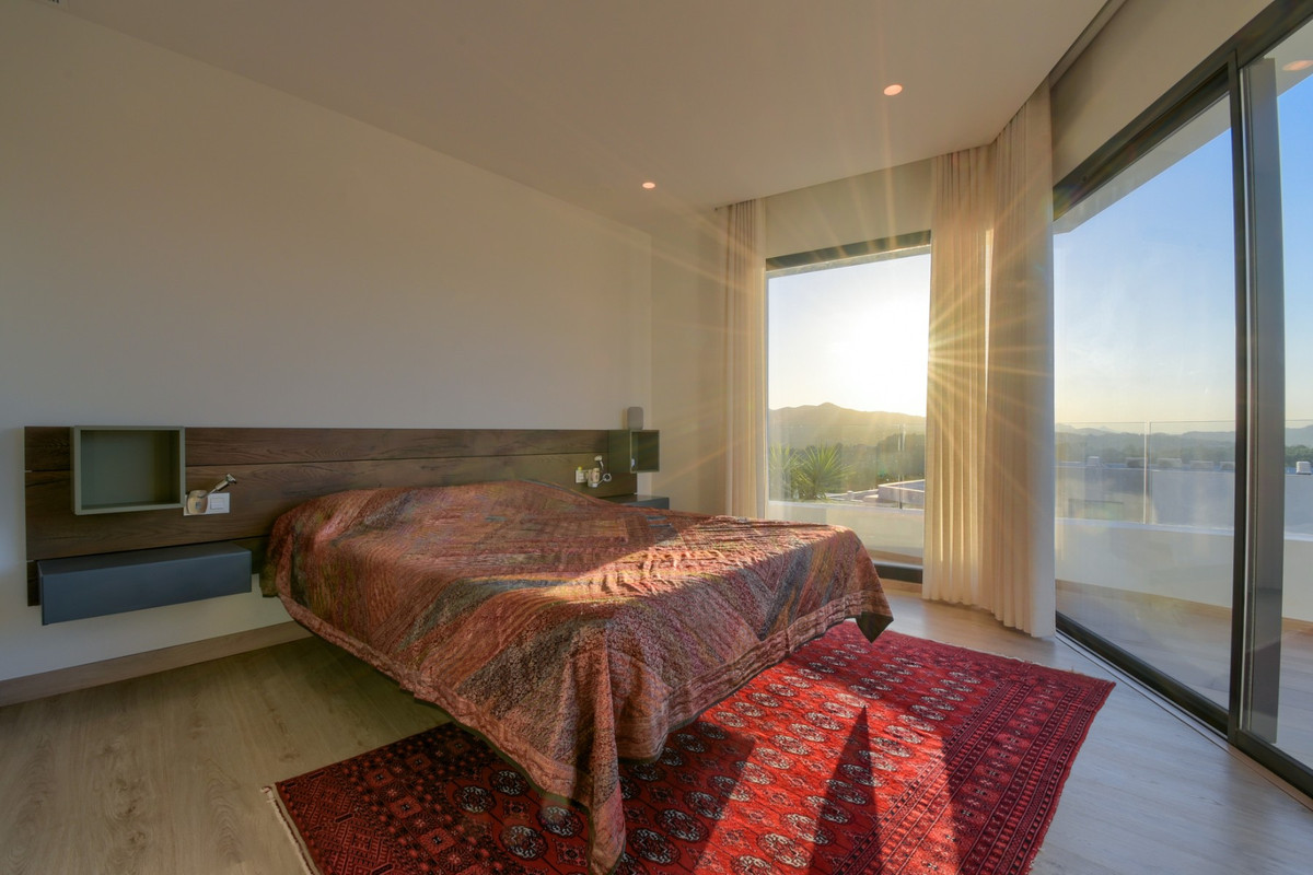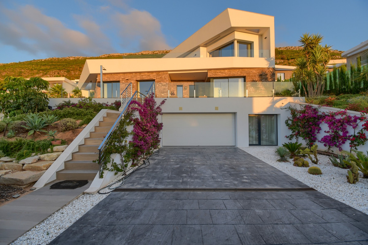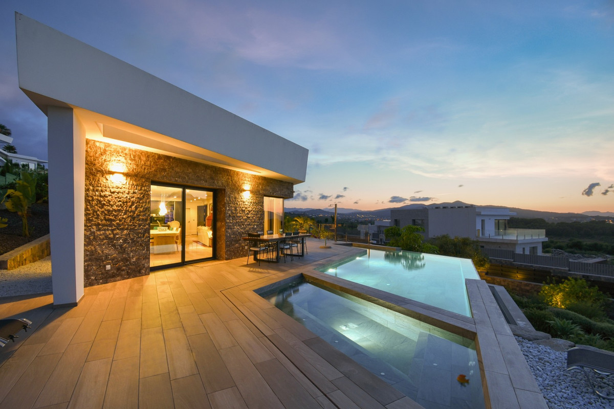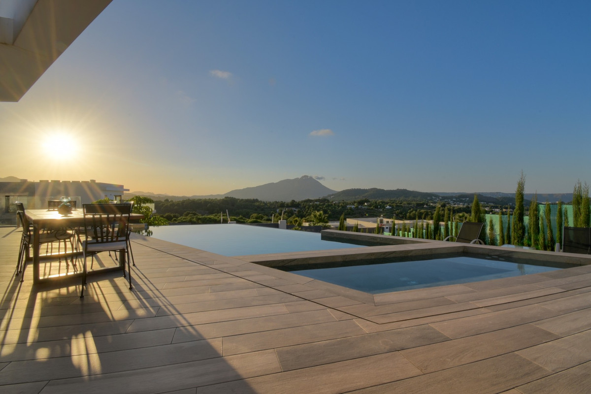 Beautiful Villa built in 2020, situated in our luxurious residential area of Monte Olimpo in Jávea, just minutes away from the beach, schools, restaurants, supermarkets, and the Golf course. This beautiful modern Villa with natural stone on part of the facade has views of the sea, the mountains, and the valley.With 283 m2 build, villa Orion consists of three floors, all with big windows which give incredible natural light to this spacious luxury villa.On the lower floor, there is a garage for 2 cars, a double bedroom en-suite, and a spacious storage area.The main floor comprises 2 double bedrooms and one bathroom, a large open-plan kitchen, dining and living room overlooking the large terraces, the infinity pool and jacuzzi both heated and controlled separately, and views over Jávea and the surrounding villages. Also, for the ones who enjoy the barbacues, this villa offers 2 barbecues with a gas and carbon burner.On the upper floor we find the master bedroom with an en-suite bathroom and a very nice dressing room with a lot of storage area. This room connects to a spacious private terrace where you can enjoy of the Mediterranean climate.This is the perfect villa to enjoy with the breathtaking views and the fabulous Mediterranean lifestyle.
