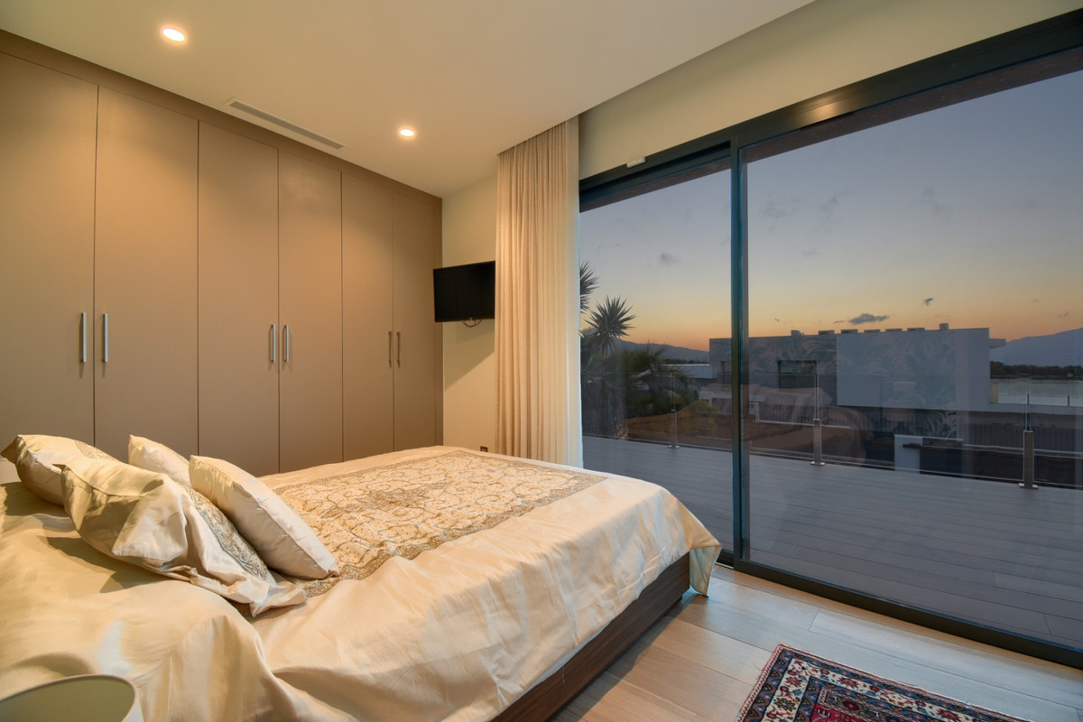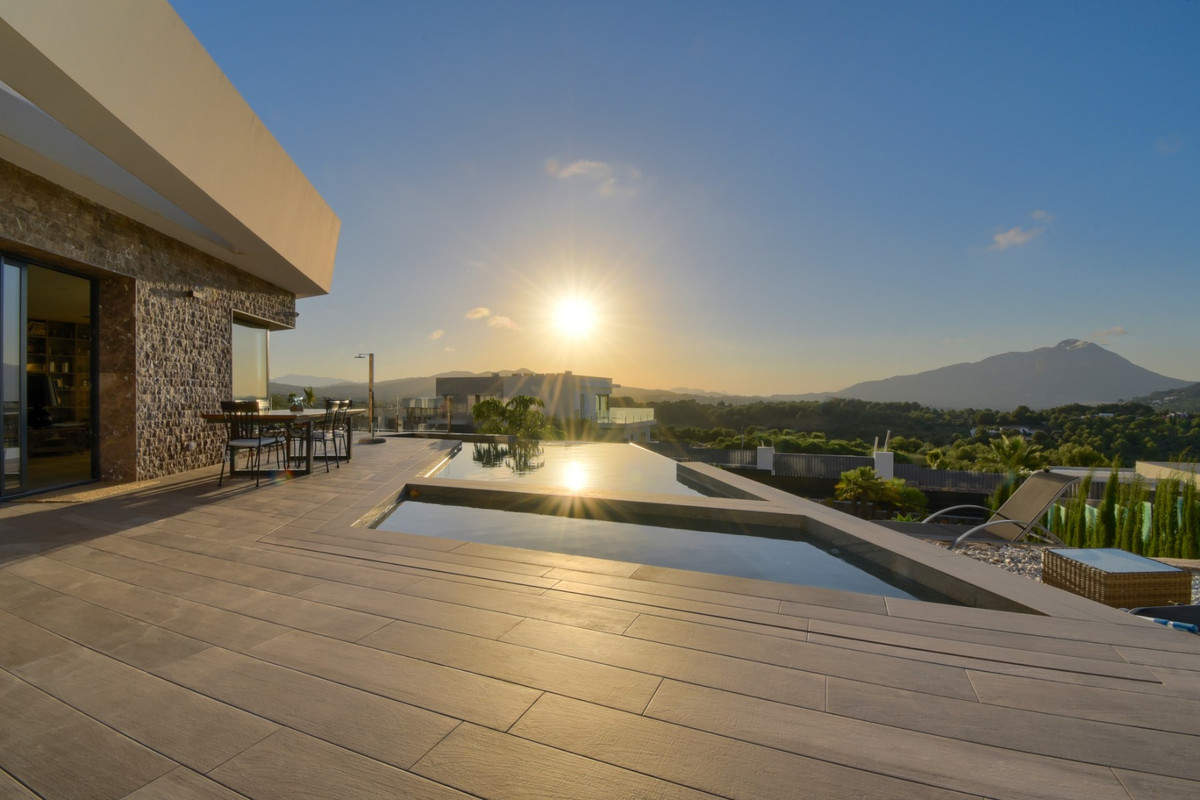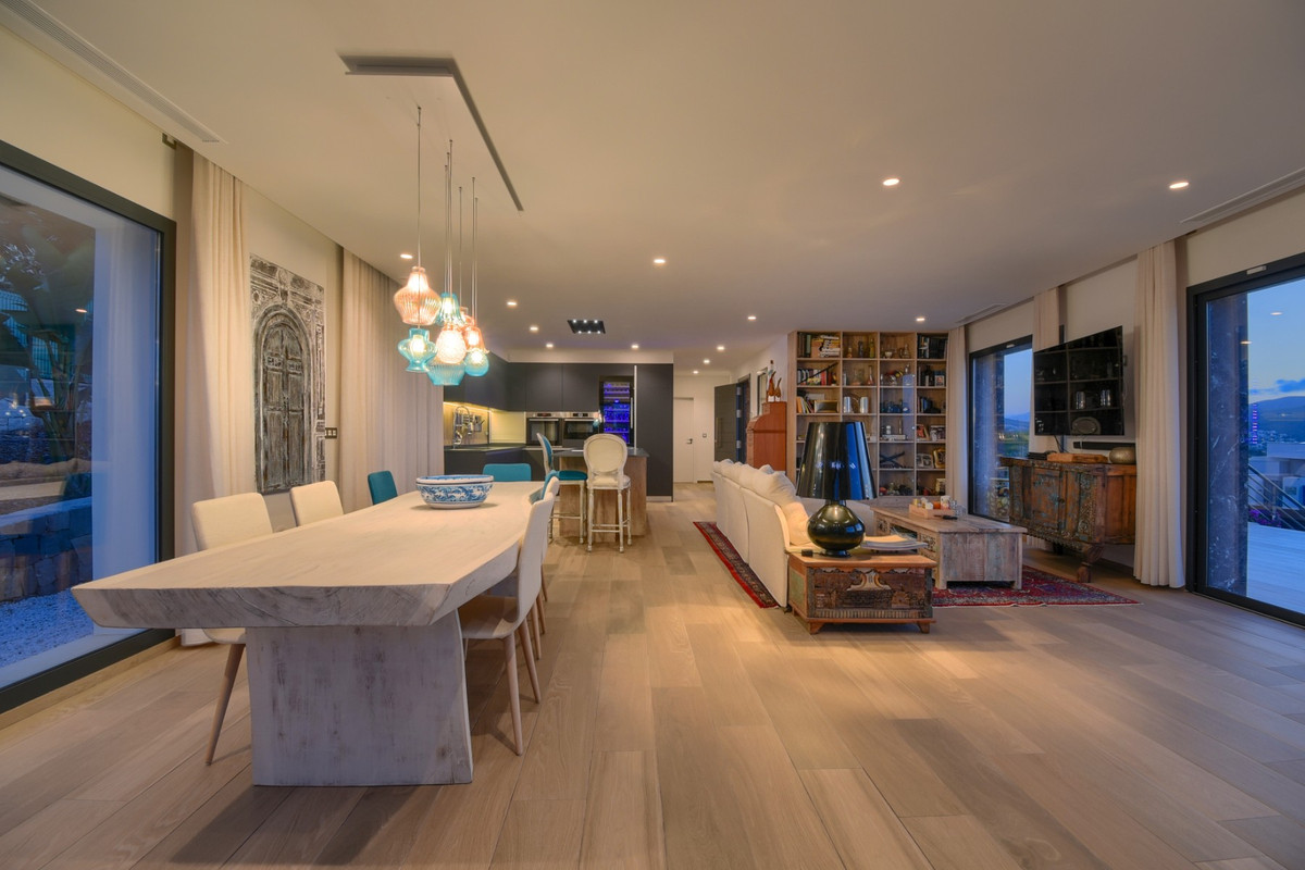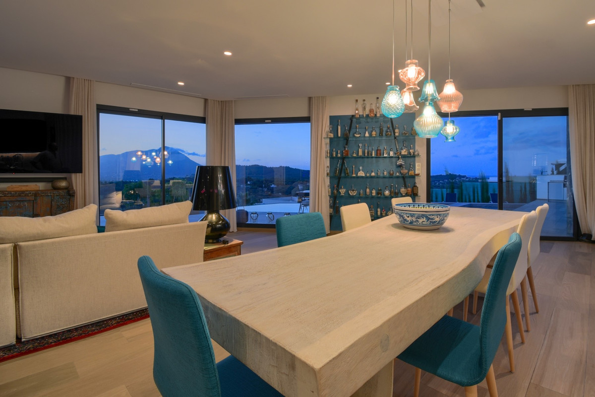 Beautiful Villa built in 2020, situated in our luxurious residential area of Monte Olimpo in Jávea, just minutes away from the beach, schools, restaurants, supermarkets, and the Golf course. This beautiful modern Villa with natural stone on part of the facade has views of the sea, the mountains, and the valley.With 283 m2 build, villa Orion consists of three floors, all with big windows which give incredible natural light to this spacious luxury villa.On the lower floor, there is a garage for 2 cars, a double bedroom en-suite, and a spacious storage area.The main floor comprises 2 double bedrooms and one bathroom, a large open-plan kitchen, dining and living room overlooking the large terraces, the infinity pool and jacuzzi both heated and controlled separately, and views over Jávea and the surrounding villages. Also, for the ones who enjoy the barbacues, this villa offers 2 barbecues with a gas and carbon burner.On the upper floor we find the master bedroom with an en-suite bathroom and a very nice dressing room with a lot of storage area. This room connects to a spacious private terrace where you can enjoy of the Mediterranean climate.This is the perfect villa to enjoy with the breathtaking views and the fabulous Mediterranean lifestyle.