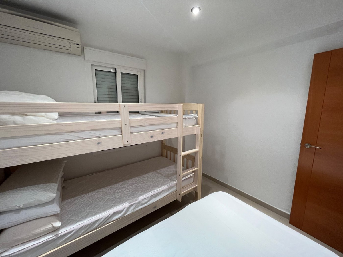 Flat for sale in the centre of Benidorm, only 200 metres from the beach.The property consists of 73 useful square meters which are distributed as follows:-One single bedroom with fitted wardrobes.-Independent and fully equipped kitchenA large bathroom with a large walk-in shower.A double bedroom with fitted wardrobes -A large fully furnished living room-A large living room fully furnished and with exit to the terrace with awnings.As an extra we can highlight a large open concept patio with folding awnings, a perfect place to spend your evenings and dinners as it is accessed directly from the kitchen.Regarding its location and as we have mentioned before, the property is located in the very centre of Benidorm, therefore we have all the variety of services and shops, as well as the public transport stops.The highlight is the distance of only 200 meters to the beach and you can access it without the need of a car.