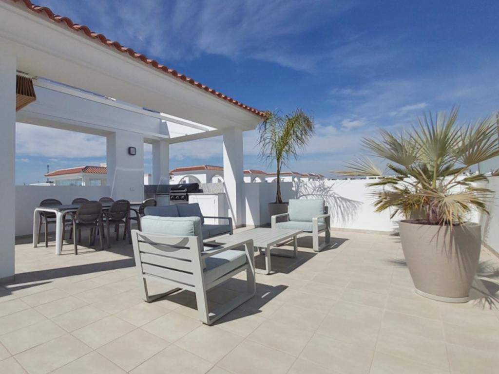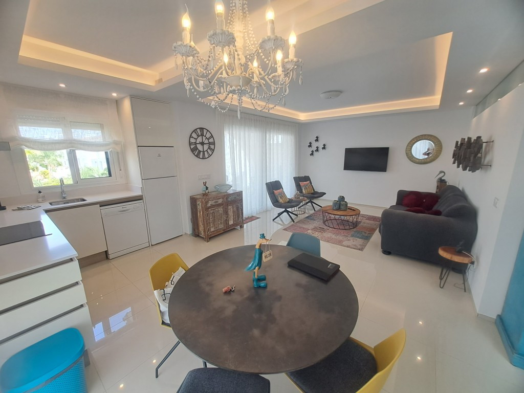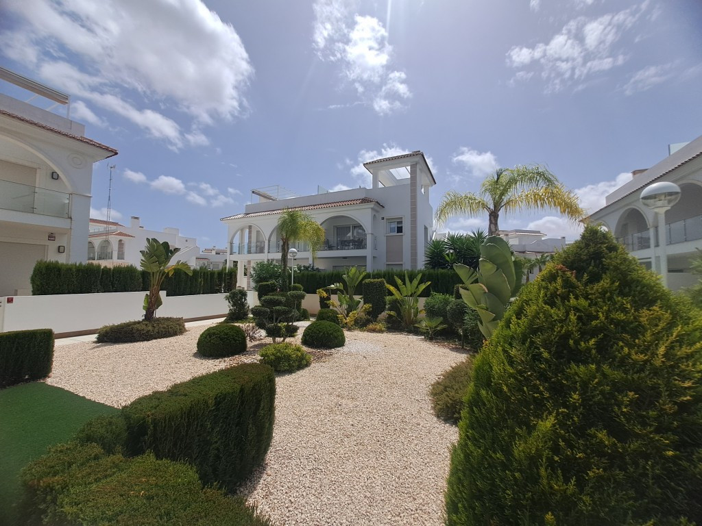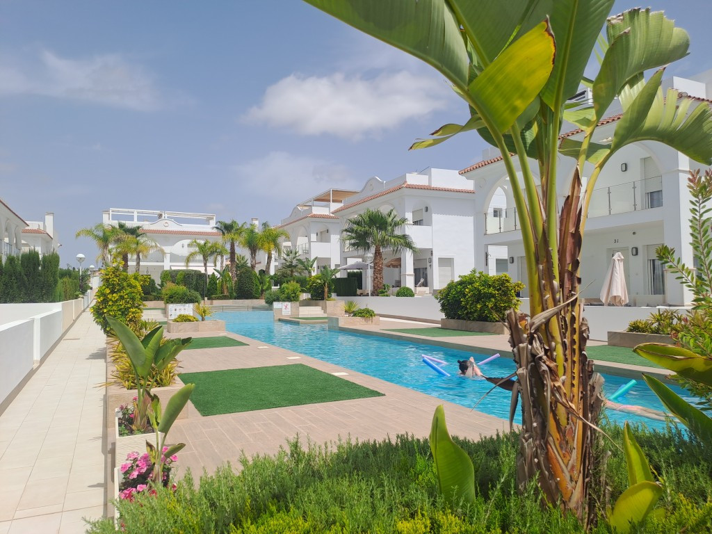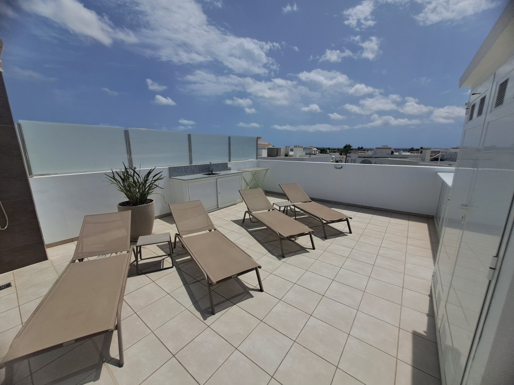 Spectacular duplex apartment in the best location of the urbanization and full view of the park and swimming pool. Modern and luxuriously furnished and with lots of light. Has a second floor of 73 m as a roof terrace and is fashionably furnished with all the necessary such as sun loungers, lounge- set, outdoor kitchen and spectacular views of the salt lakes. In the closed urbanization there is parking and there are also 3 swimming pools.