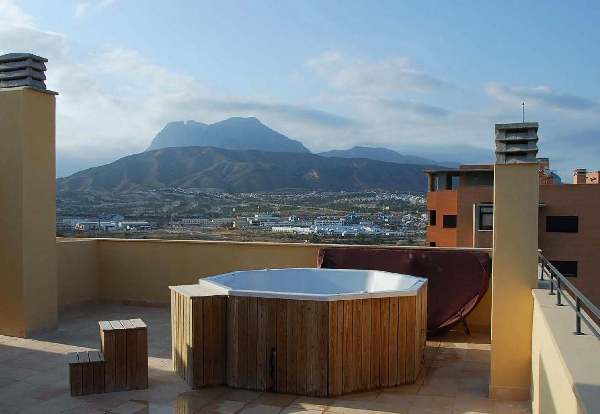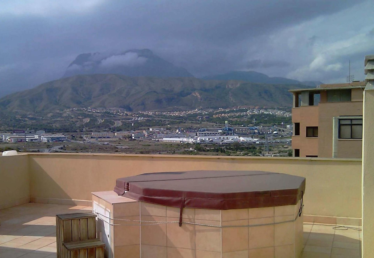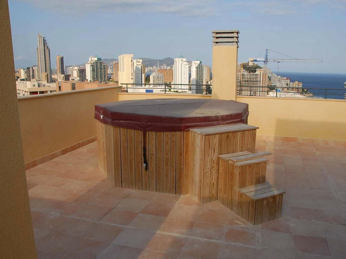 Spectacular duplex penthouse in Cala de Finestrat.It consists of an access floor with a bedroom with a built-in wardrobe and a toilet, access stairs to the upper floor distributed in a living-dining room with a large pergola terrace, a master bedroom with a built-in wardrobe, a large fully fitted kitchen with a ceramic hob and oven, a laundry room Closed clothesline and access stairs to the solarium on the private deck where an eight-seater Jacuzzi hydromassage bathtub is located. Unbeatable views in all directions.It has a parking space and a closed storage room located on the first basement floor.It belongs to an urbanization that has a community pool, large garden areas, paddle tennis court and children's play area.Just 800 meters from Cala de Finestrat!! Less than 10 minutes walking.Do not miss these luxurious views of the sea and all of Benidorm. Book your visit without obligation.