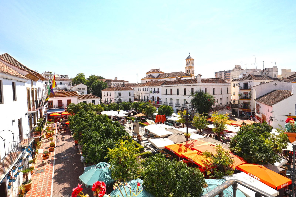Unique and unrepeatable purchase opportunity. Exclusive elegantly furnished apartment for sale, located in the historic center of Marbella and with wonderful views of its emblematic Plaza de Los Naranjos and the Hermitage of Santiago, the oldest in the city. It has its access through the busy street of La Estación and its charming shops. Formed by the union of 2 properties on the second floor, it has all the character of a typical house in the old town and at the same time with many details and luxuriously furnished. The property consists of an entrance hall, a distributor with fitted wardrobes, a large fully fitted and equipped kitchen, a large living room with access to 3 balconies with wonderful views of Plaza de Los Naranjos, 2 bedrooms and 2 bathrooms, one of them on suite room. 10 m2 warehouse included in the price. Hot and cold air conditioning in all rooms. A true jewel for lovers of the old town of Marbella and its corners.