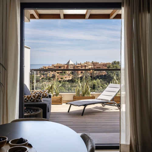 has a private elevator and is located in the residential compound of Mirador Del Rodeo in Nueva Andalucía.