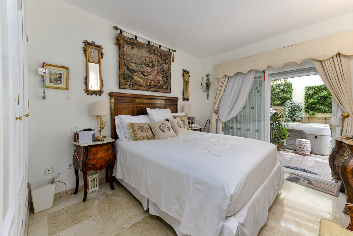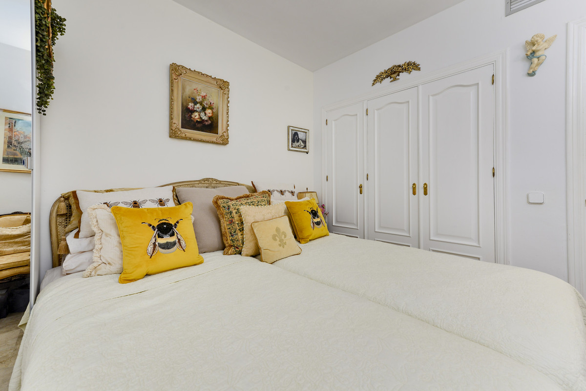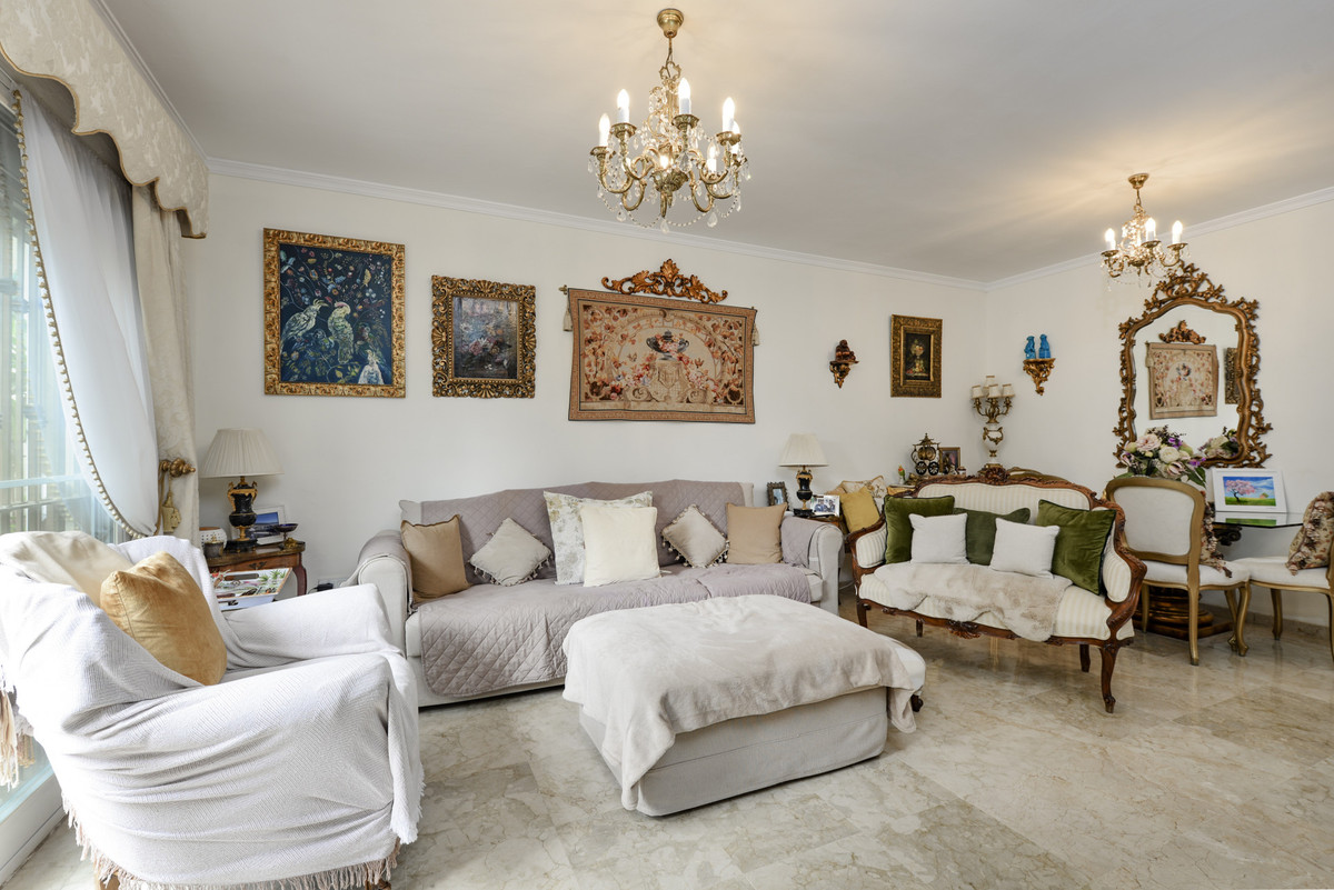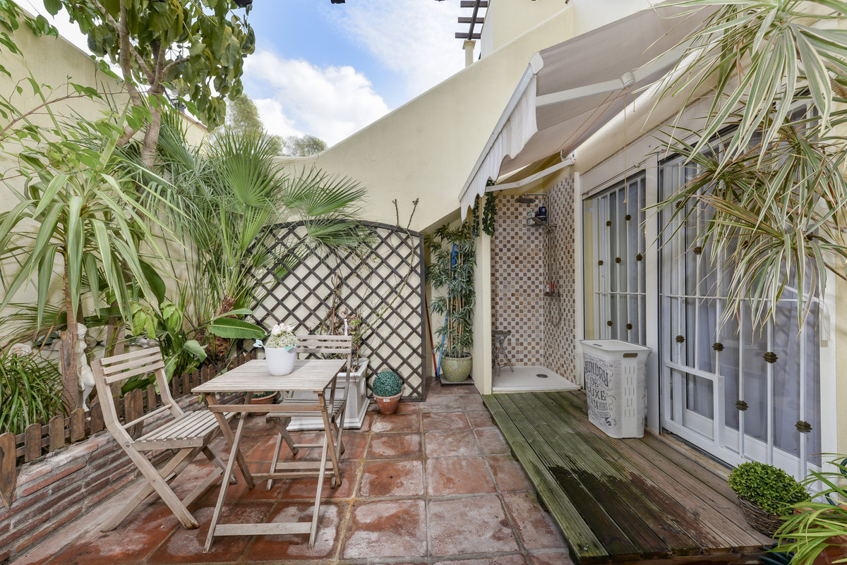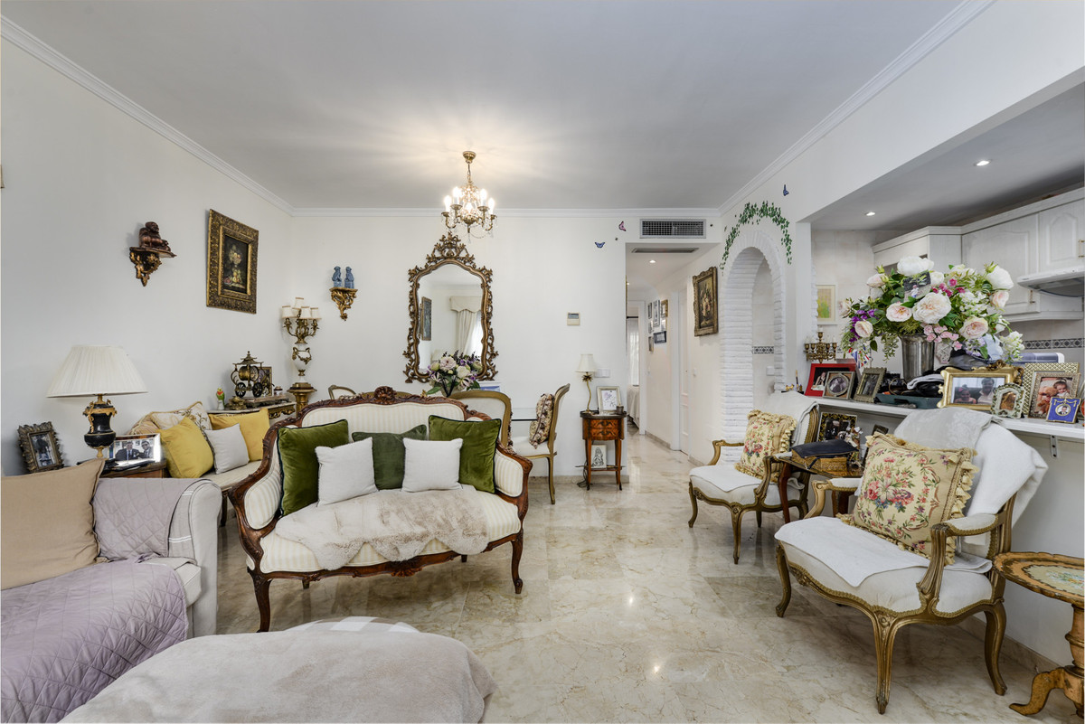 Velbeliggende og lys, toværelses, sydvestvendt lejlighed i stueetagen i et velbeliggende og populært lukket kompleks i Nueva Andalucía golfdalen.