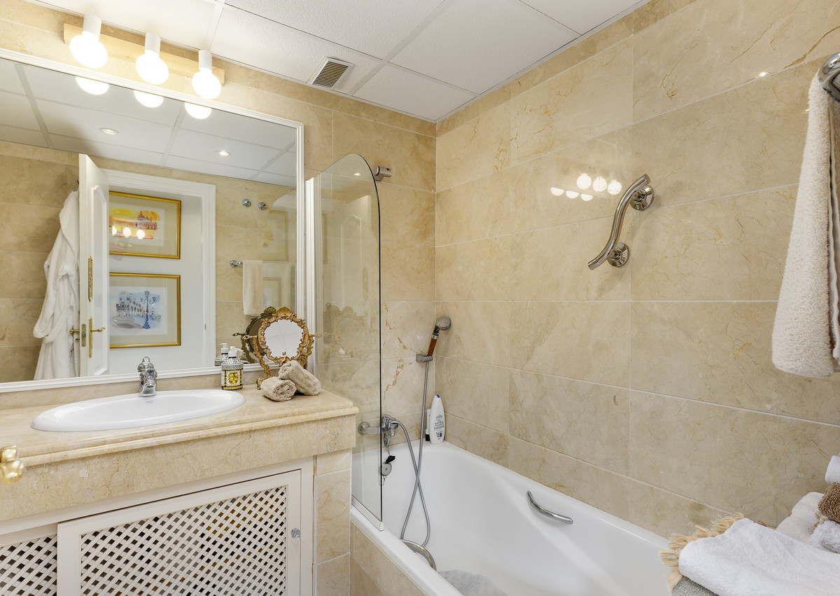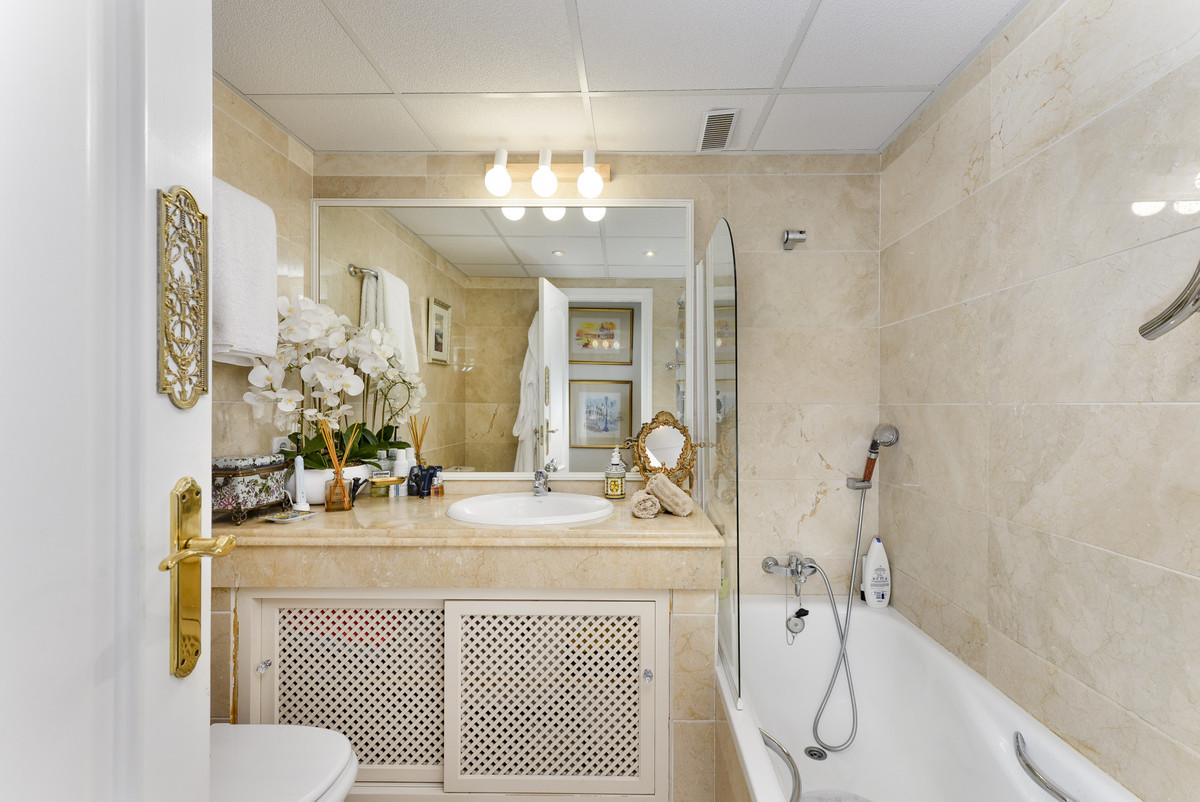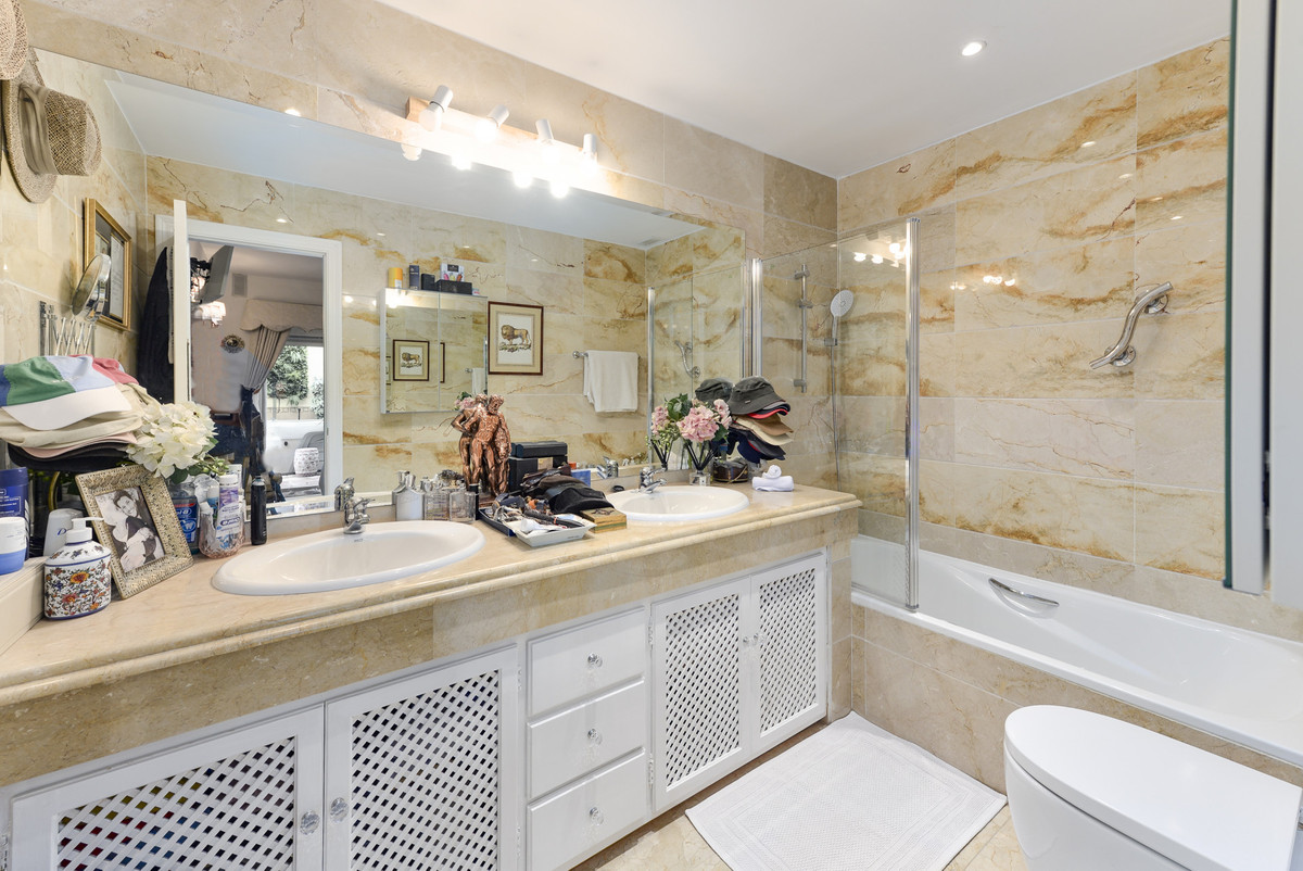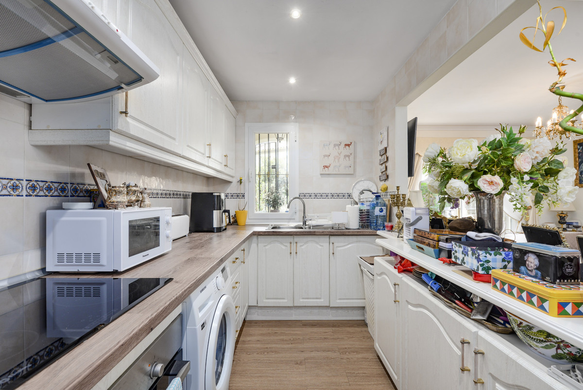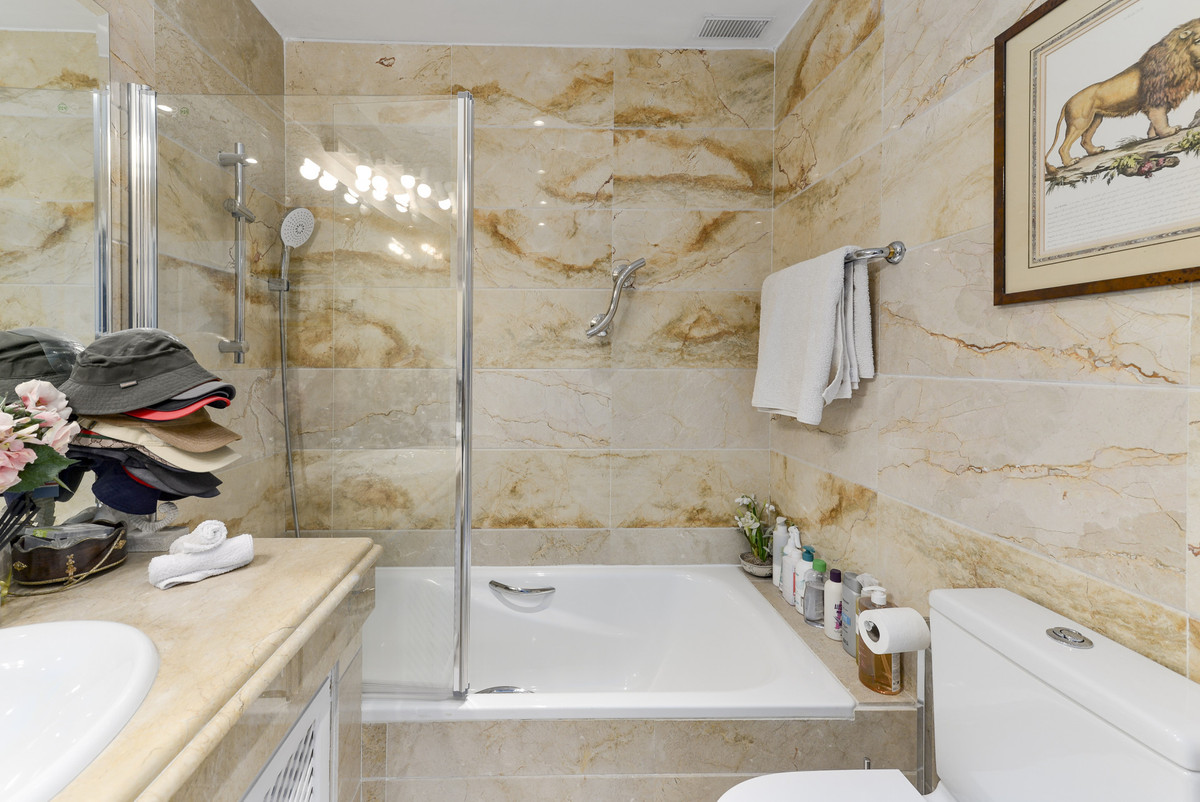 Velbeliggende og lys, toværelses, sydvestvendt lejlighed i stueetagen i et velbeliggende og populært lukket kompleks i Nueva Andalucía golfdalen.