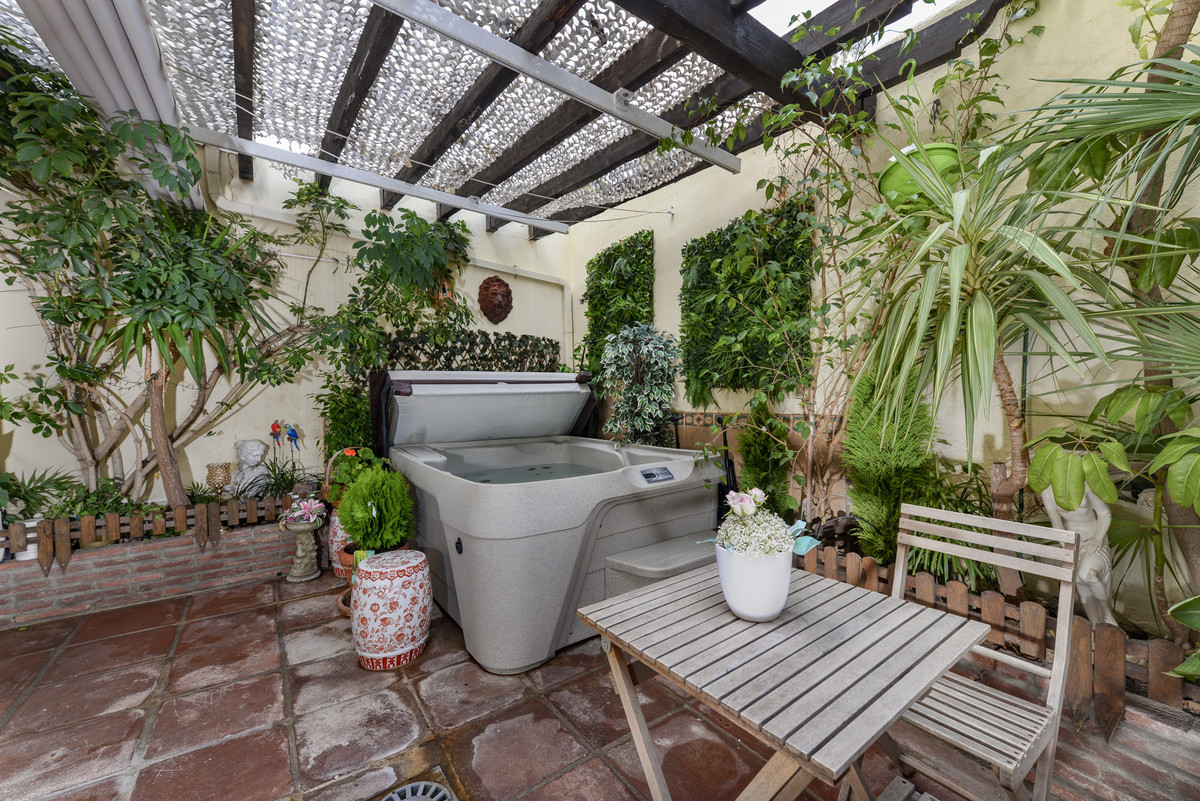 Møbleret lejlighed - straks tilgængelig til langtidsudlejning eller salg - toværelses lejlighed i stueetagen i Los Pinos de Aloha, i hjertet af Nueva Andalucía golfdalen, med to private terrasser og en jacuzzi