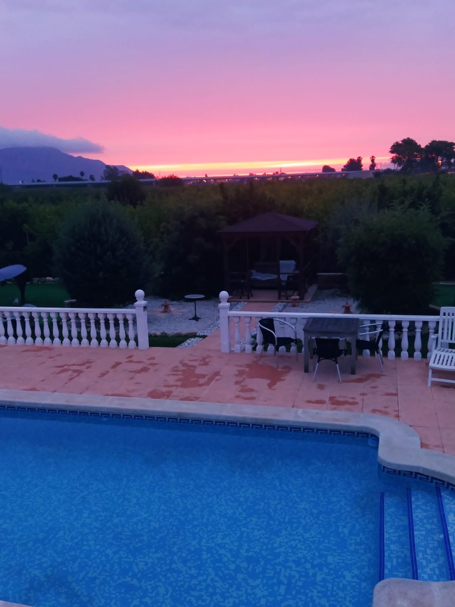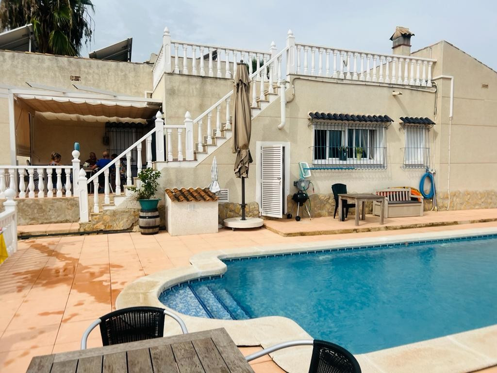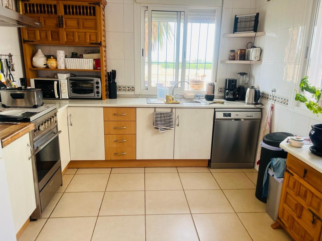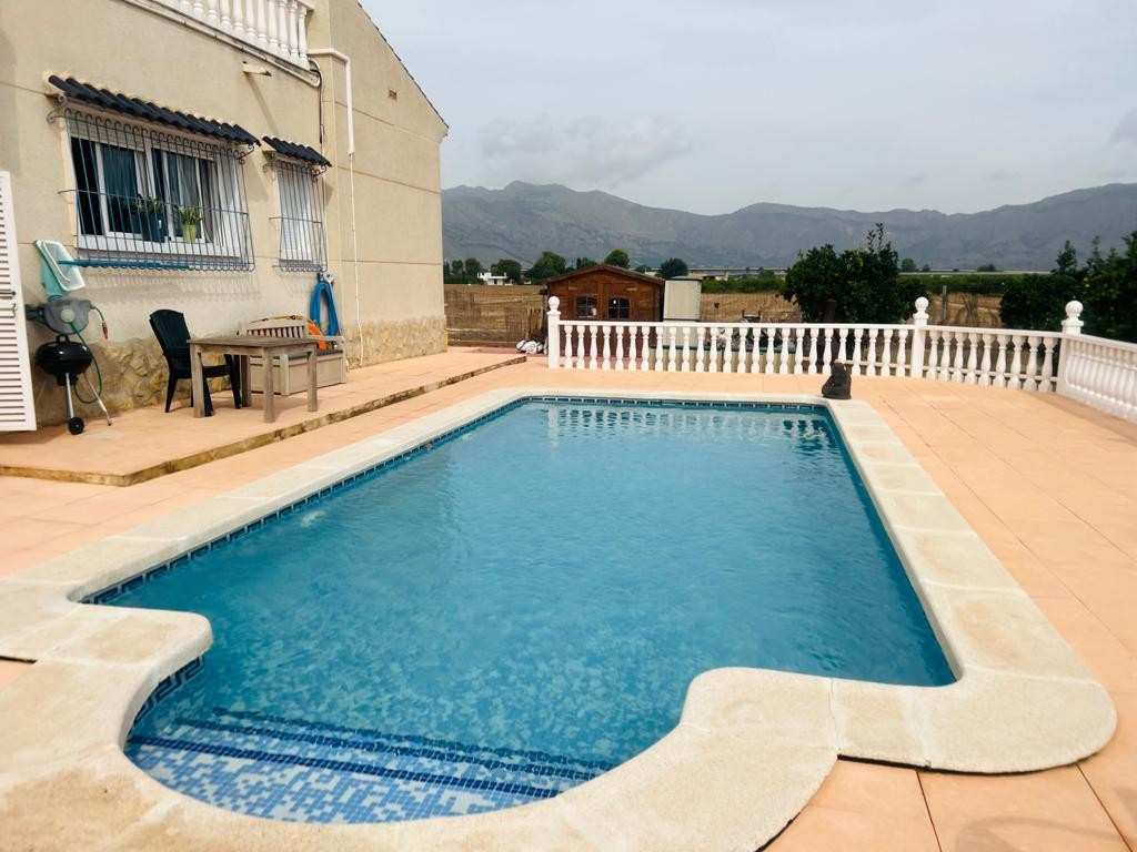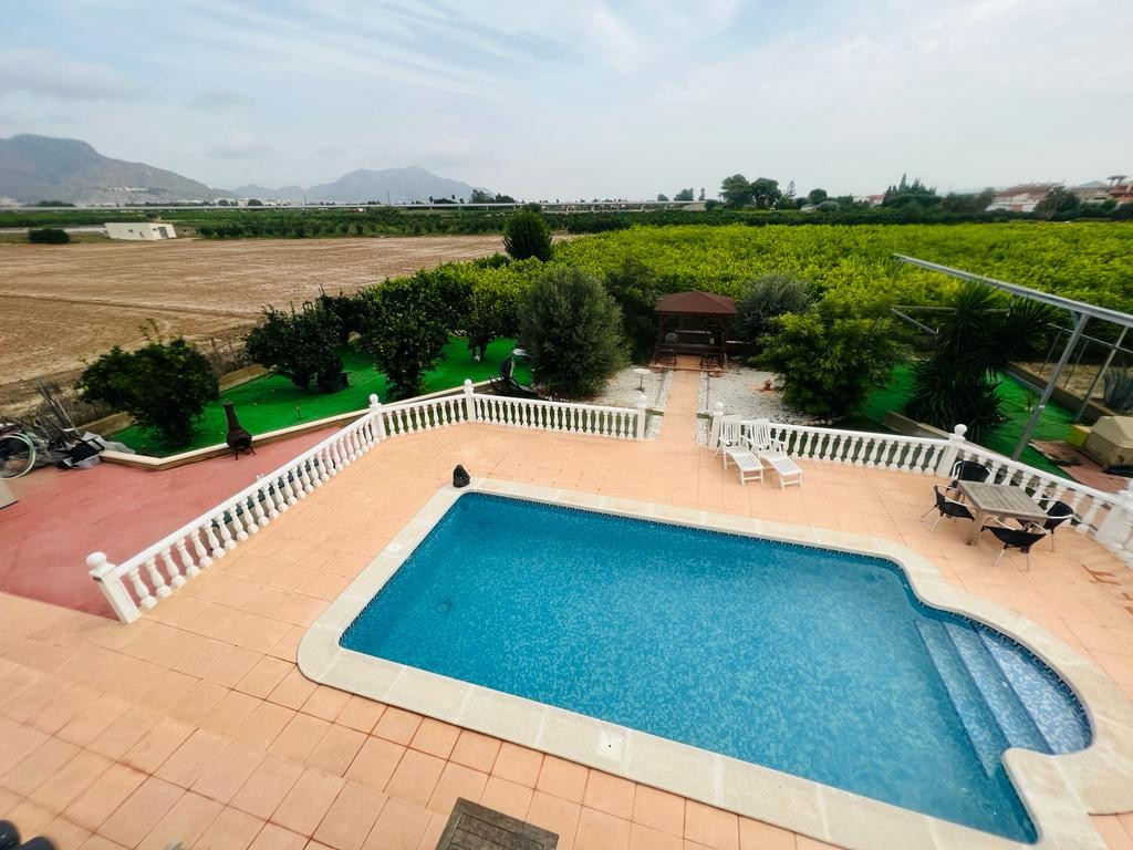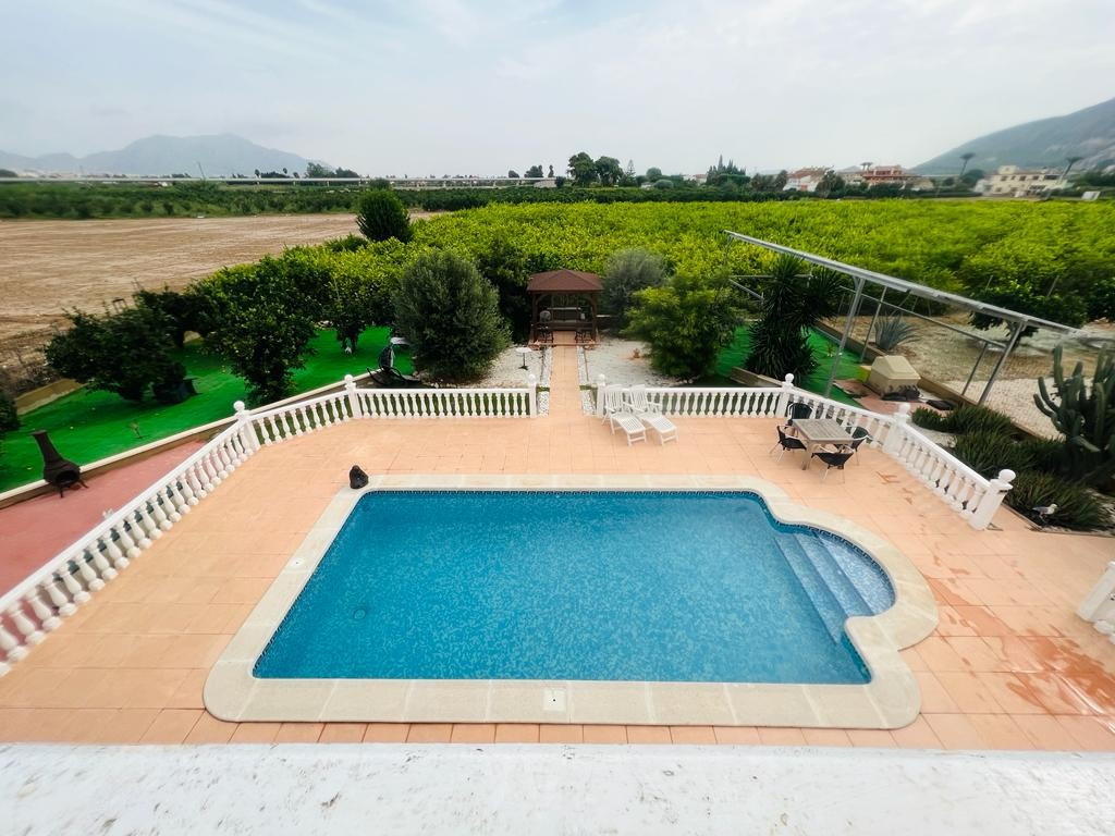 Sikke et smukt landligt hjem, denne ejendom byder på så mange muligheder og fortjener dit besøg på stedet. En privat vej fører dig fra den offentlige vej til en rummelig, indhegnet og indhegnet ejendom. På forsiden af huset er der en bred trappe (5 trin), der giver adgang til en terrasse, hvor det er skønt at slappe af og nyde et måltid eller en drink med en betagende udsigt ud af vinden. Herfra kommer du også ind i det store køkken og spiseplads, som ligger i umiddelbar ophæng med stuen, hvor et Pillefyr kan sørge for hygge i vintermånederne. På den ene side af huset er der et rummeligt master bedroom med en-suite badeværelse og på den anden side er der 2 rummelige soveværelser med et familiebadeværelse imellem. Udover spisepladsen er der på bagsiden af huset en sydøstvendt terrasse, der også nyder solgardin i de varme sommermåneder. Fra denne terrasse kan du overskue den smukke have, og du har også udsigt til den 8mx4m store swimmingpool Dette hus er anerkendt af kommunen, men er ikke blevet lovliggjort. Der er et '"Certificado de Antigüedad" til rådighed, og kommunen har udstedt en attest for eftergivelse af eksistensen eller ikke-eksistensen af bykrænkelse, som sikrer, at huset kan blive stående. ("Remisión certificado de existencia o no de infracción urbanística") På grund af denne anerkendelse skal SUMA/IBI også betales årligt, men det er ikke muligt at låne til denne ejendom gennem et pengeinstitut. Der er vand, kloakering og huset har solpaneler, hvilket gør det selvforsynende. På grund af dens beliggenhed +/- 5 minutter i bil fra byen Orihuela, kan du nyde to verdener, total fred og ro i landstedet og tæt på alle faciliteter. Et besøg værd!