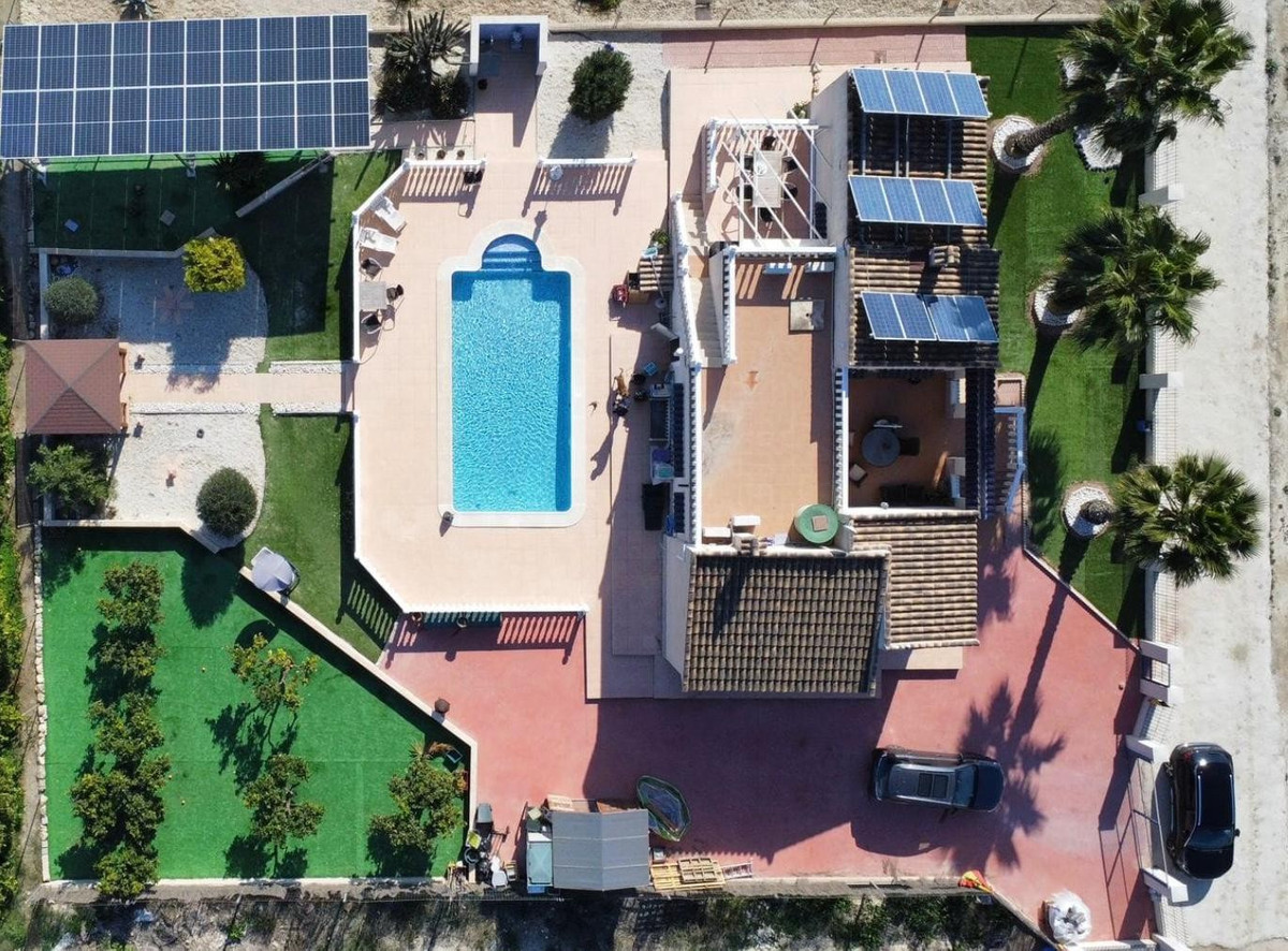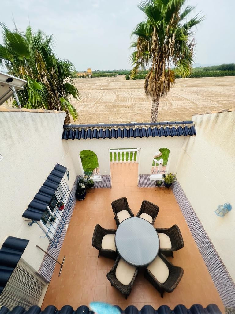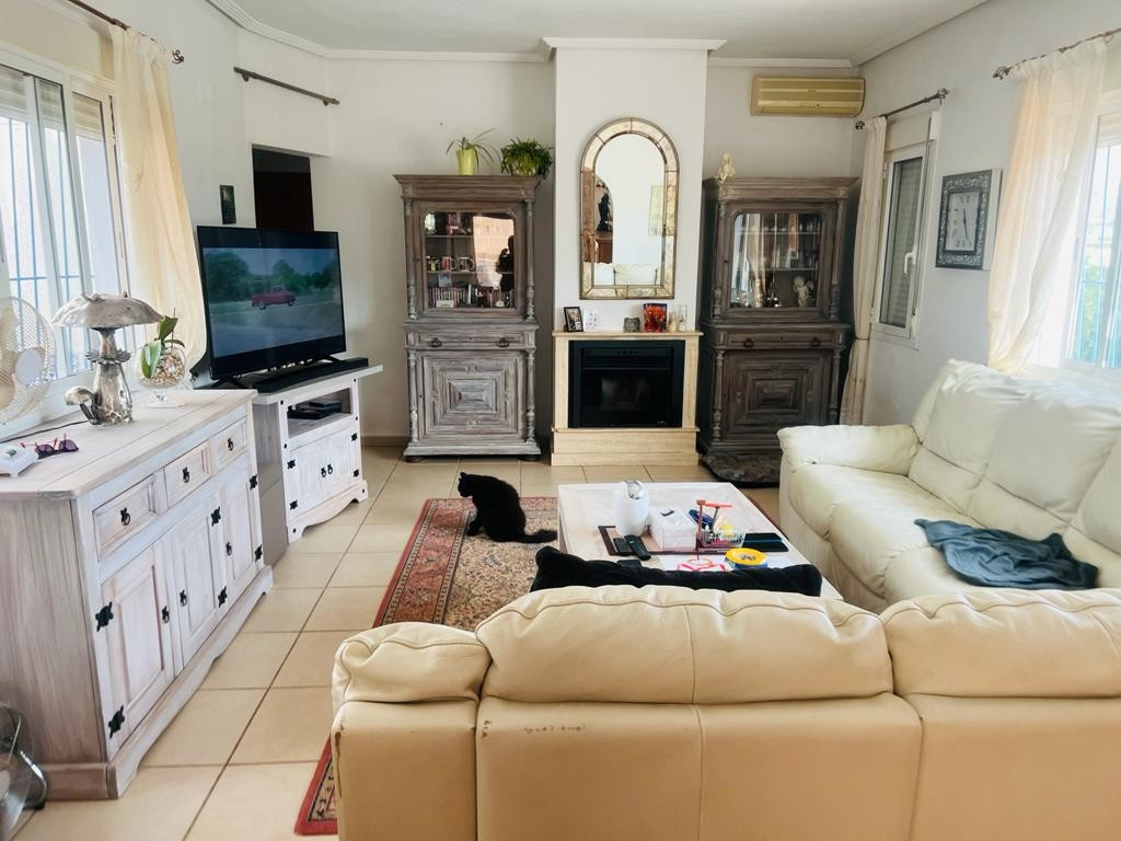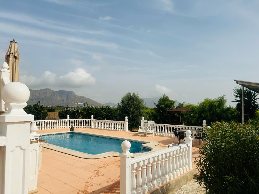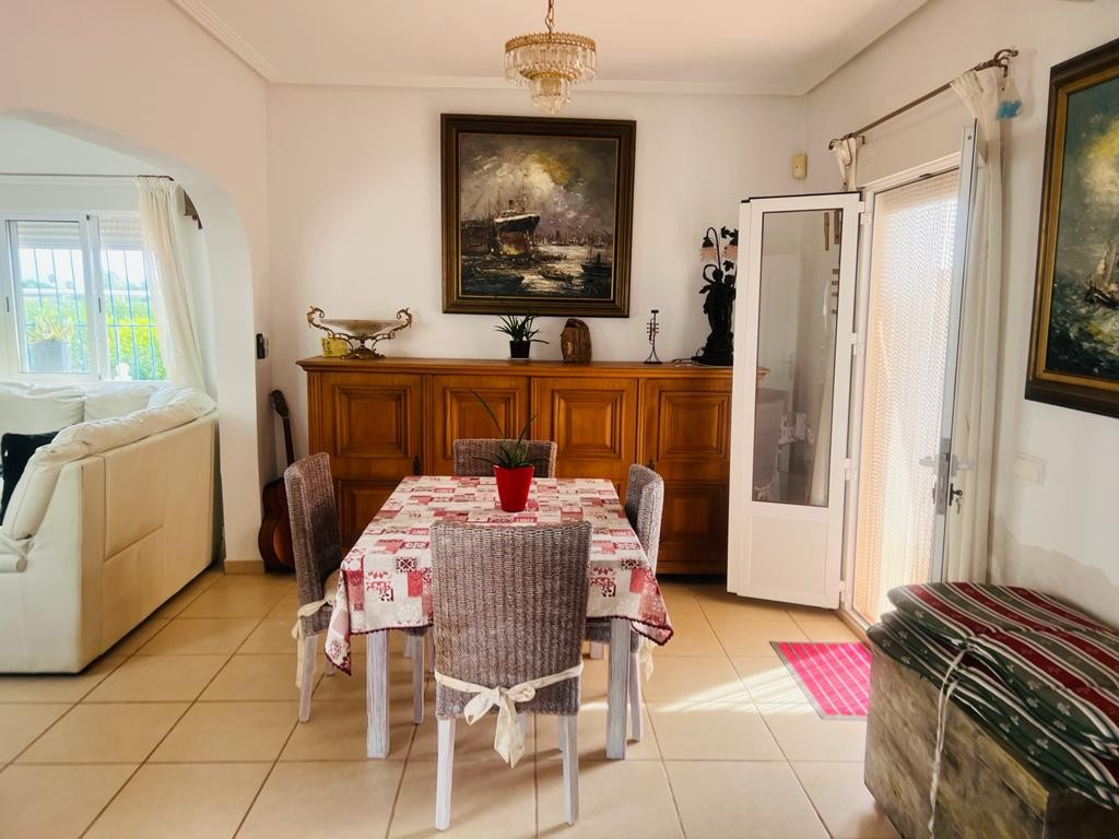Sikke et smukt landligt hjem, denne ejendom byder på så mange muligheder og fortjener dit besøg på stedet. En privat vej fører dig fra den offentlige vej til en rummelig, indhegnet og indhegnet ejendom. På forsiden af huset er der en bred trappe (5 trin), der giver adgang til en terrasse, hvor det er skønt at slappe af og nyde et måltid eller en drink med en betagende udsigt ud af vinden. Herfra kommer du også ind i det store køkken og spiseplads, som ligger i umiddelbar ophæng med stuen, hvor et Pillefyr kan sørge for hygge i vintermånederne. På den ene side af huset er der et rummeligt master bedroom med en-suite badeværelse og på den anden side er der 2 rummelige soveværelser med et familiebadeværelse imellem. Udover spisepladsen er der på bagsiden af huset en sydøstvendt terrasse, der også nyder solgardin i de varme sommermåneder. Fra denne terrasse kan du overskue den smukke have, og du har også udsigt til den 8mx4m store swimmingpool Dette hus er anerkendt af kommunen, men er ikke blevet lovliggjort. Der er et '"Certificado de Antigüedad" til rådighed, og kommunen har udstedt en attest for eftergivelse af eksistensen eller ikke-eksistensen af bykrænkelse, som sikrer, at huset kan blive stående. ("Remisión certificado de existencia o no de infracción urbanística") På grund af denne anerkendelse skal SUMA/IBI også betales årligt, men det er ikke muligt at låne til denne ejendom gennem et pengeinstitut. Der er vand, kloakering og huset har solpaneler, hvilket gør det selvforsynende. På grund af dens beliggenhed +/- 5 minutter i bil fra byen Orihuela, kan du nyde to verdener, total fred og ro i landstedet og tæt på alle faciliteter. Et besøg værd!