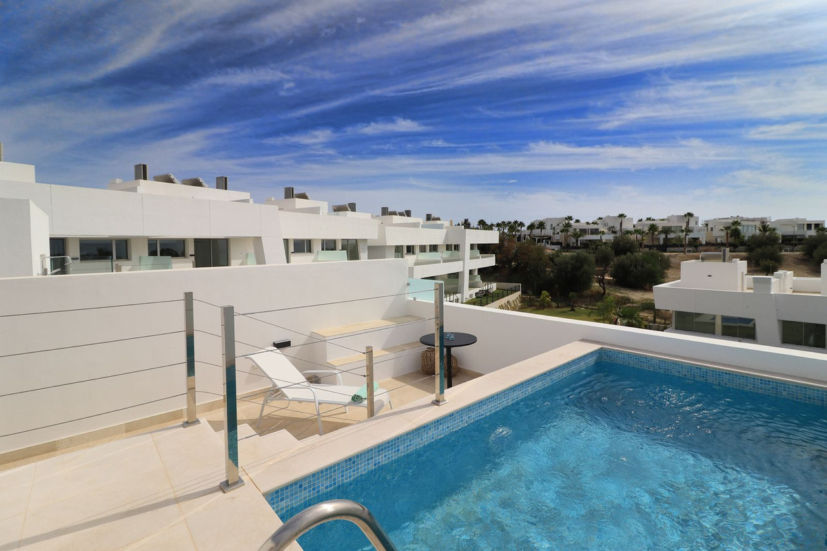 Den øverste etage har master bedroom med et garderobeområde, ensuite badeværelse og en stor terrasse med liggestole og udsigt til haven. Den øverste etage indeholder også 2 andre soveværelser med skabe, der deler badeværelset. Tagterrassen har panoramaudsigt over havet, lounge spiseplads med udsigt over bjergene og en privat infinity swimmingpool med udsigt over havet.