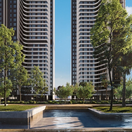 The apartment unfolds with a generously proportioned open kitchen area seamlessly merging with the living room, accompanied by three bedrooms and a luxuriously appointed bathroom.