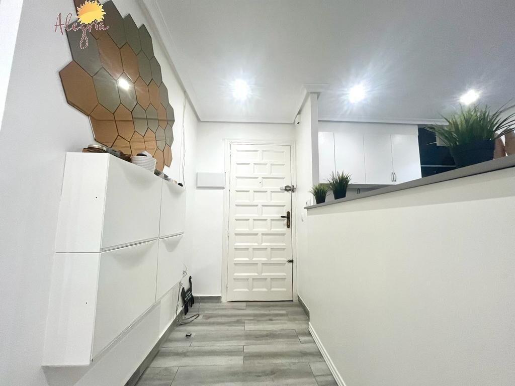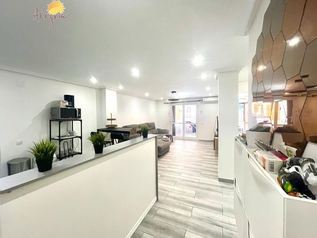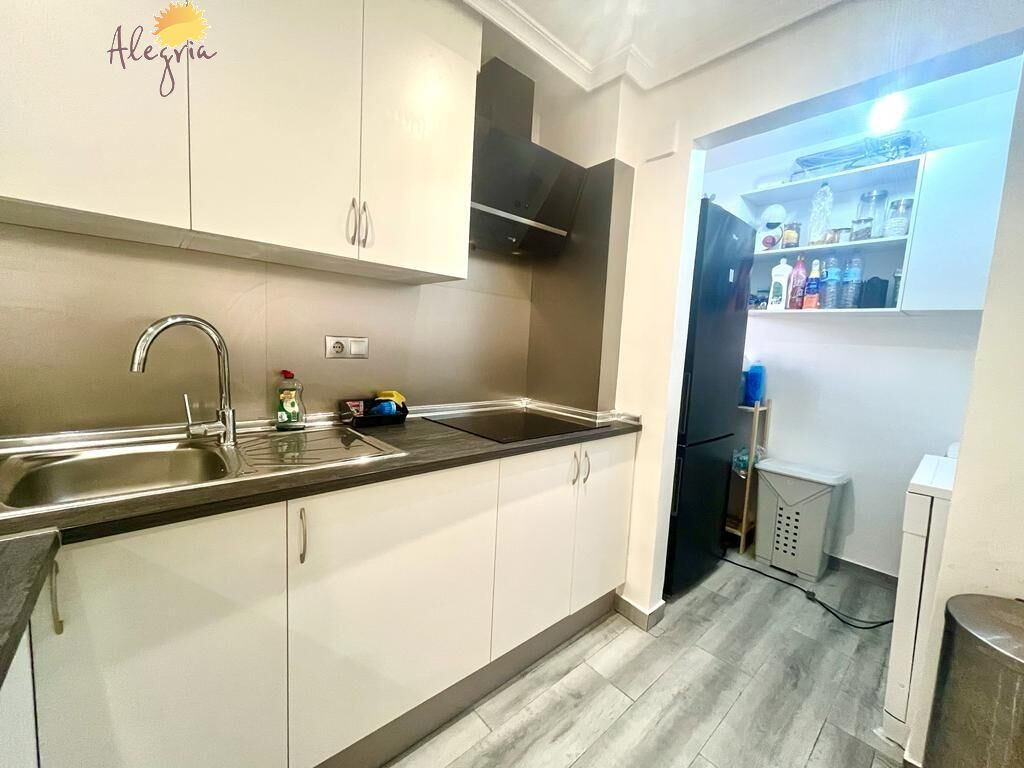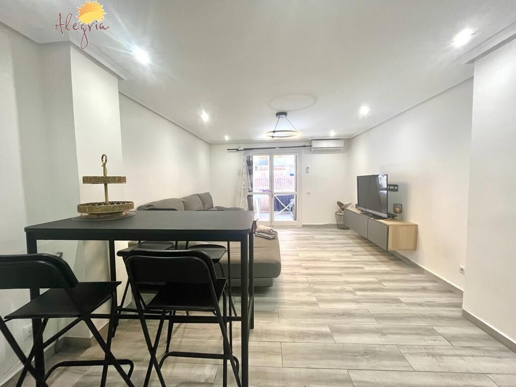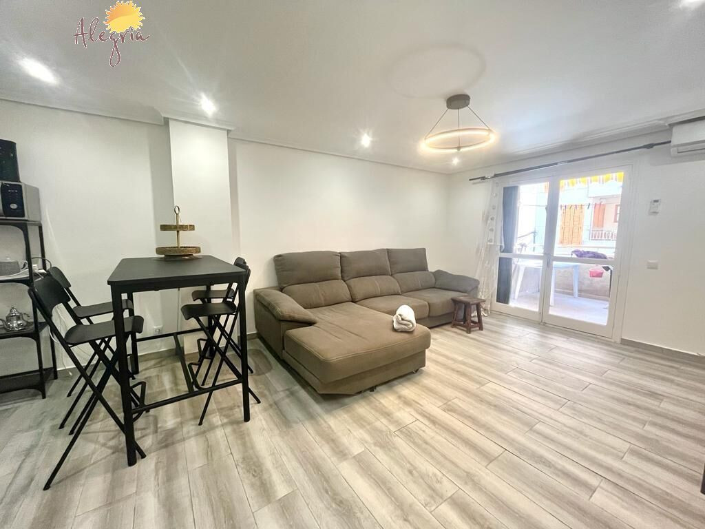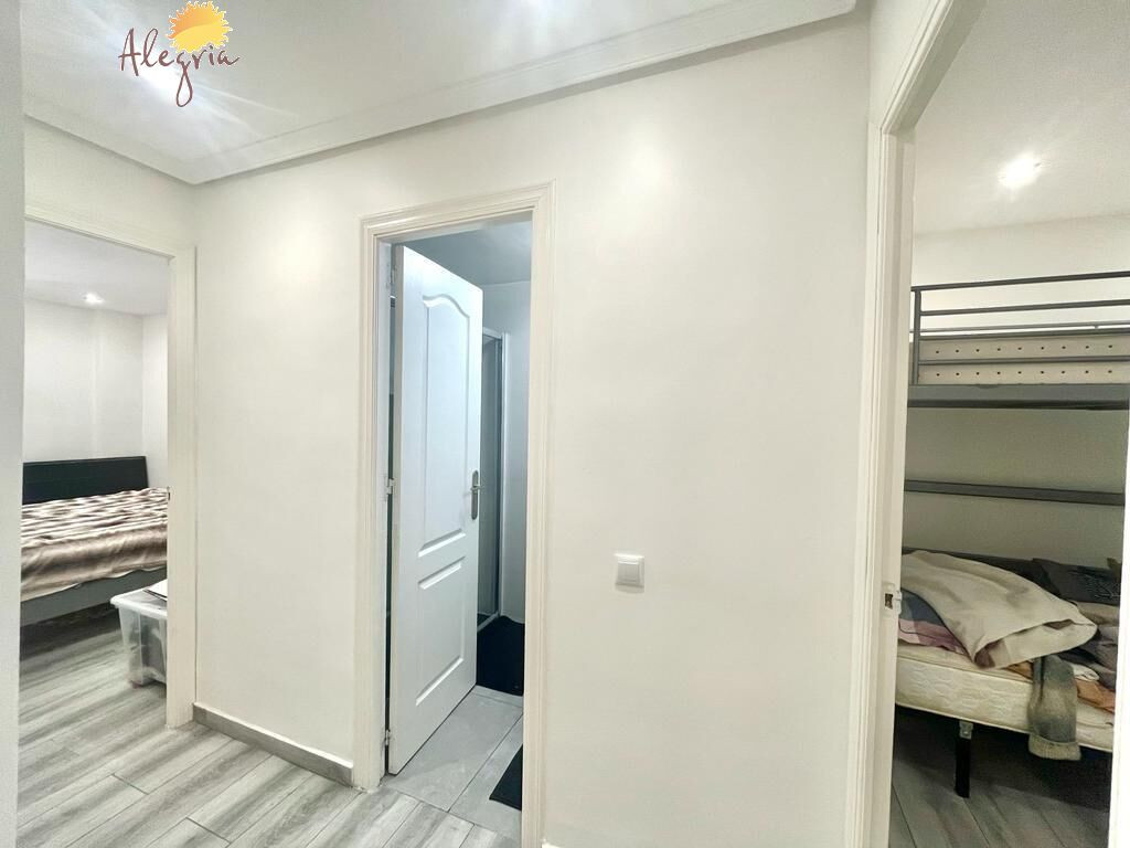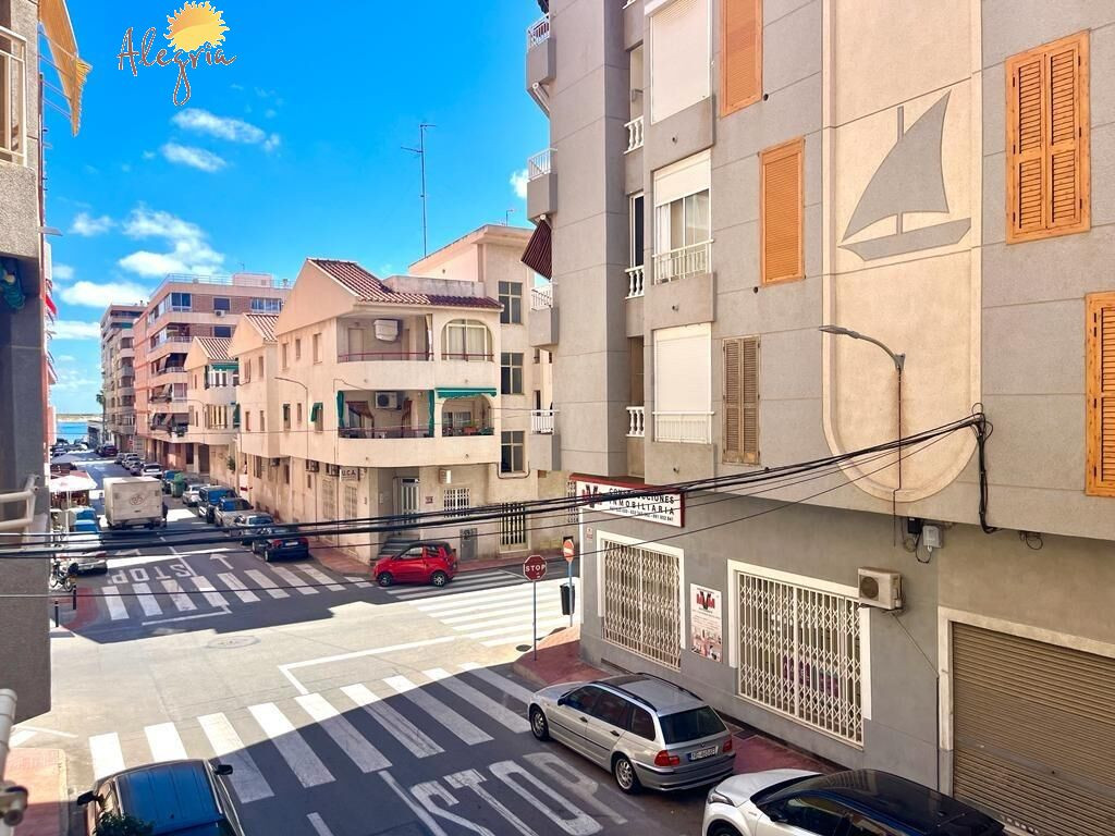 Apartment in Torrevieja Acequion area, 76 m2. surface, 200 m. from the beach (4 minutes walk from the beach), a double room and a single room, renovated property, white lacquered interior carpentry, south facing, porcelain stoneware floor, wooden exterior carpentry.Extras: pmr access, water, air conditioning, elevator, balcony, gallery, bright, light, furniture, community pool, terrace, buses, central (surrounded by all services), shopping centers, medical centers, schools, coast, hospitals, supermarkets, sea views (sides)