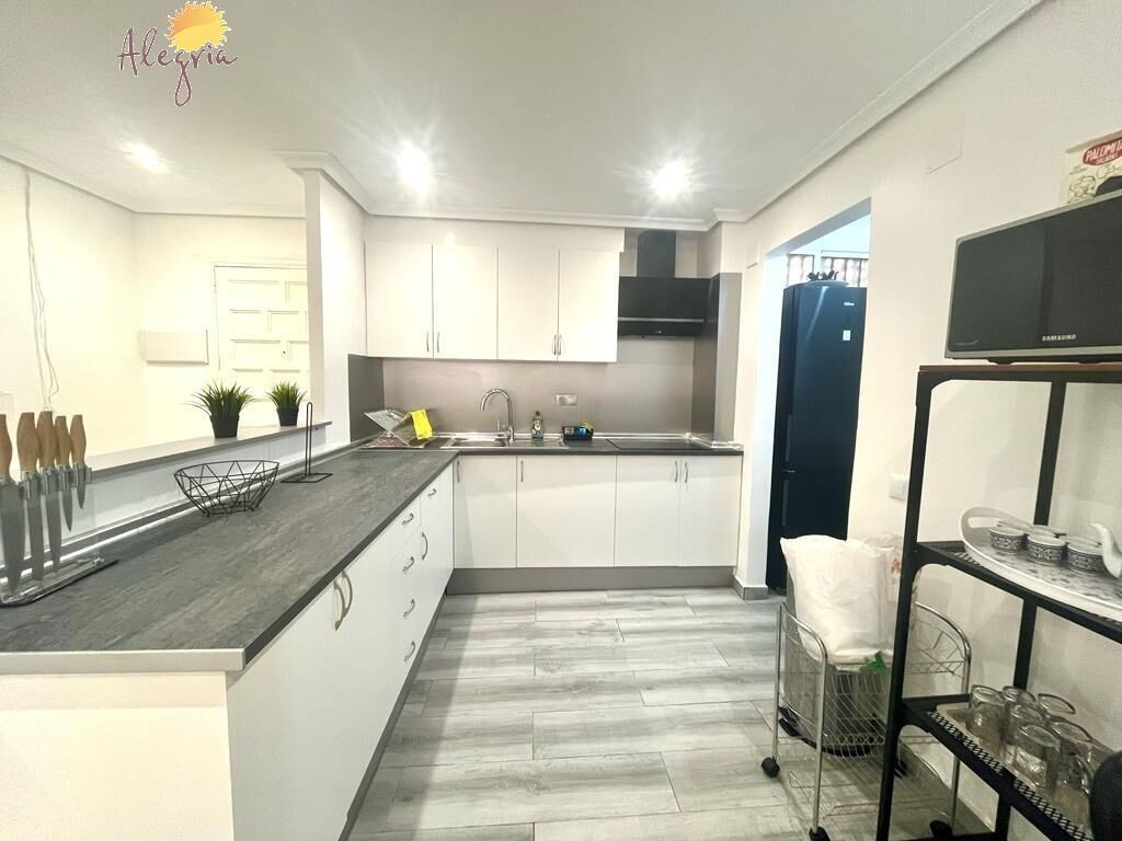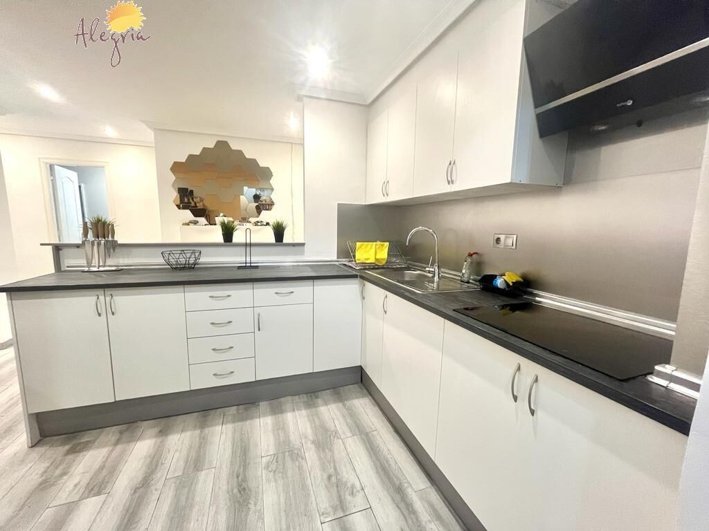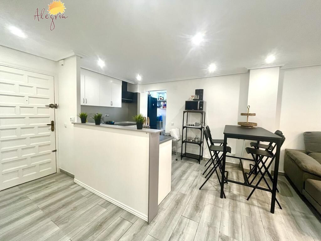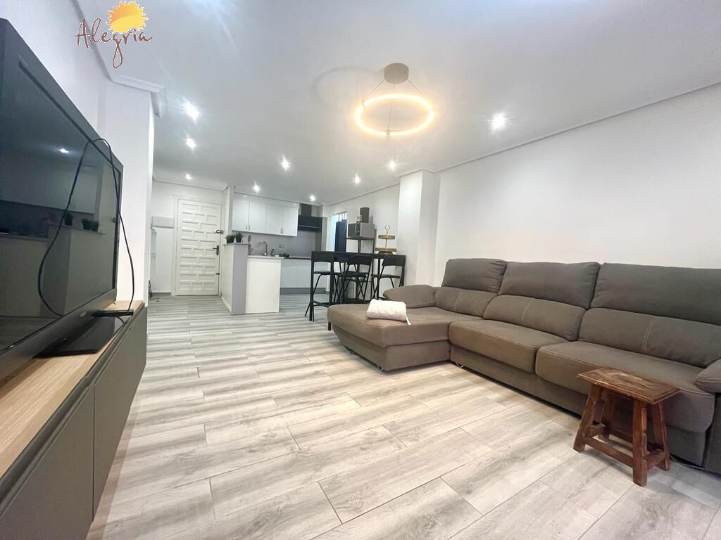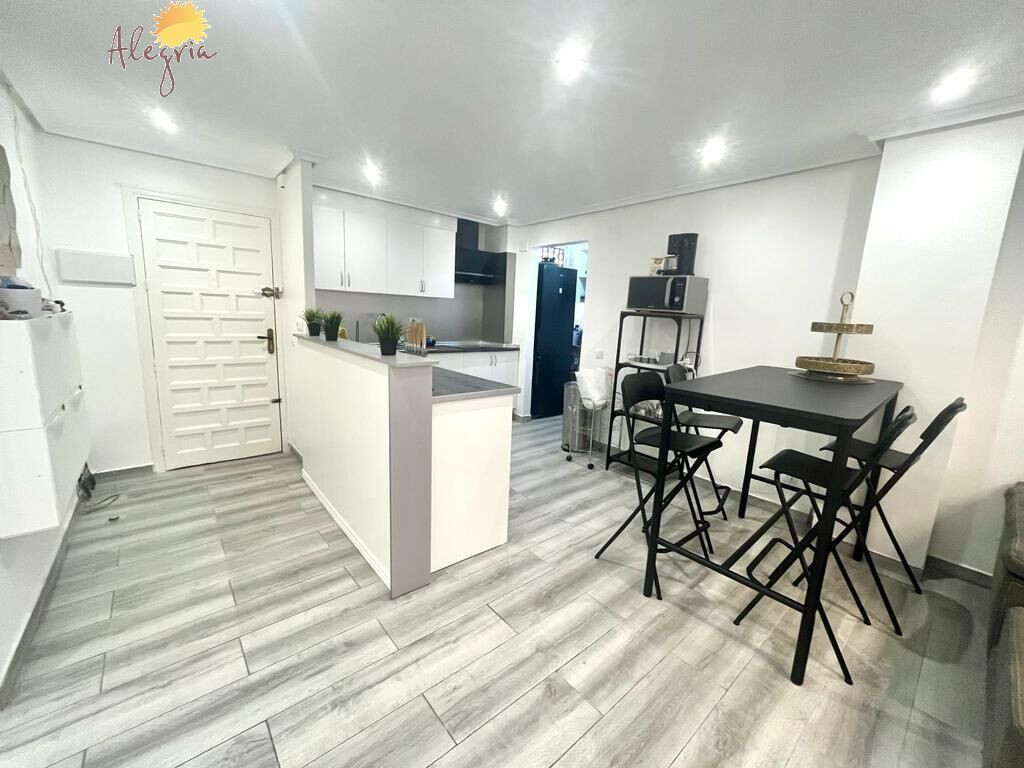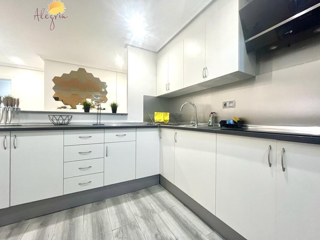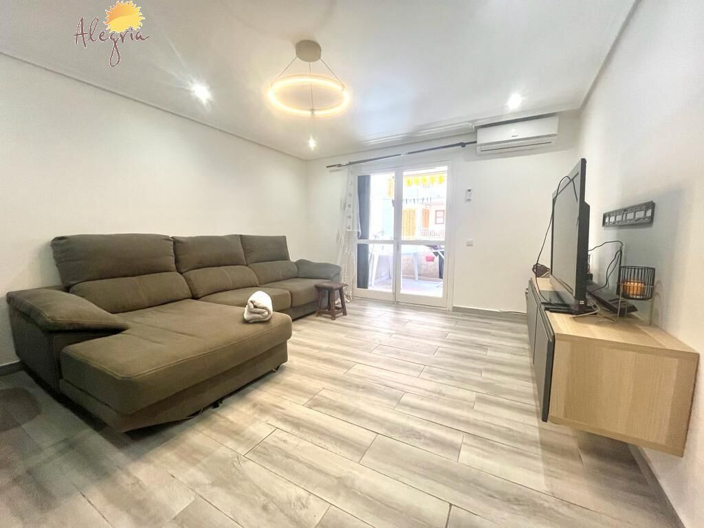 Apartment in Torrevieja Acequion area, 76 m2. surface, 200 m. from the beach (4 minutes walk from the beach), a double room and a single room, renovated property, white lacquered interior carpentry, south facing, porcelain stoneware floor, wooden exterior carpentry.Extras: pmr access, water, air conditioning, elevator, balcony, gallery, bright, light, furniture, community pool, terrace, buses, central (surrounded by all services), shopping centers, medical centers, schools, coast, hospitals, supermarkets, sea views (sides)