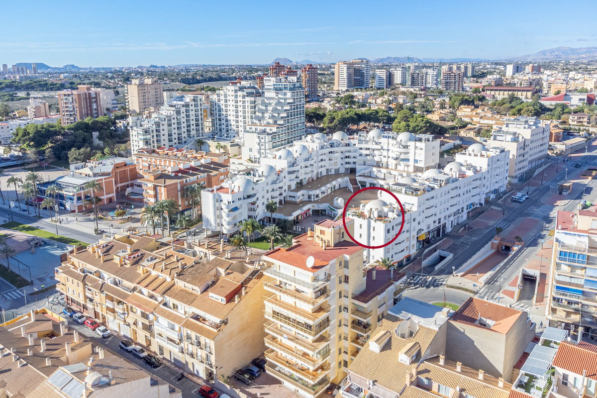 Situated on the main shopping street parallel to the promenade of El Campello, this penthouse boasts a private corner roof terrace, a prime location, and sea views. El Campello is a charming coastal town that has retained its traditional fishing village character. Conveniently located, it is just a 20-minute drive to Alicante City with its vibrant attractions, 30 minutes to Alicante Airport, 15 minutes to the nearest golf course, and 20 minutes to the colourful coastal village of Villajoyosa.