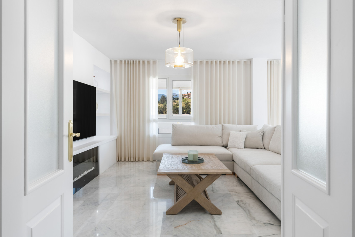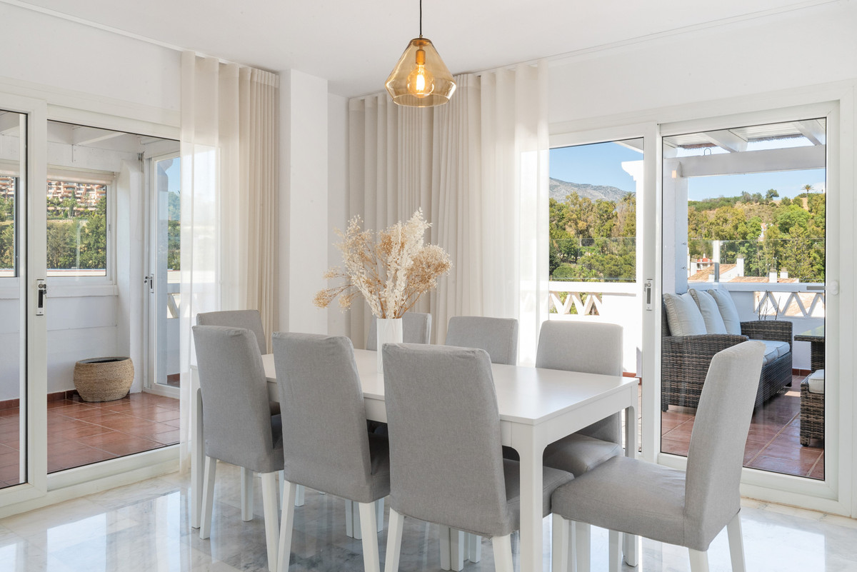 This exquisite penthouse in Nueva Andalucia, Marbella, offers a luxurious and spacious living experience with its newly renovated interior and stunning features. With four bedrooms, this penthouse is the epitome of modern elegance and comfort.
