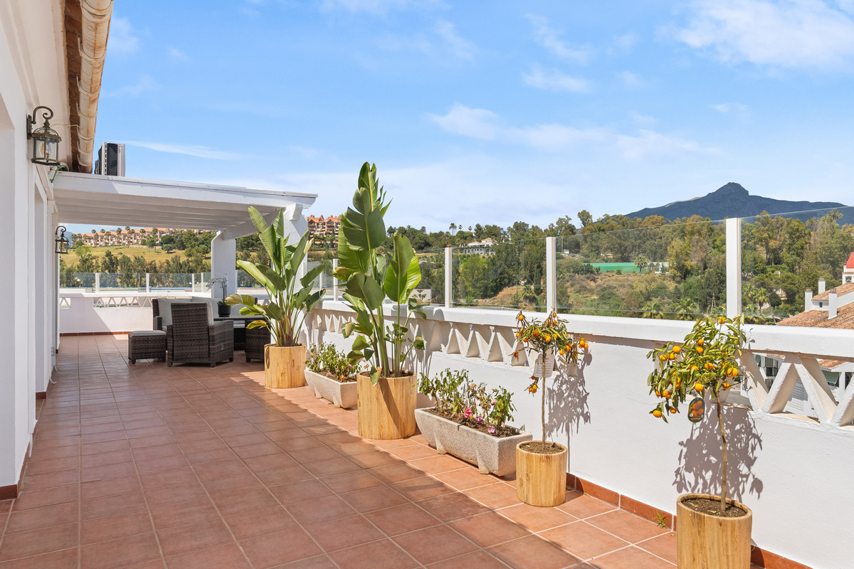 One of the standout features of this penthouse is the expansive terrace that provides breathtaking panoramic views of the surrounding area. Whether it's the lush greenery of Nueva Andalucia, the distant Mediterranean Sea, or the picturesque mountain ranges, you'll be able to enjoy these vistas from the comfort of your own home. This terrace is perfect for entertaining guests, dining al fresco, or simply basking in the beauty of your surroundings.