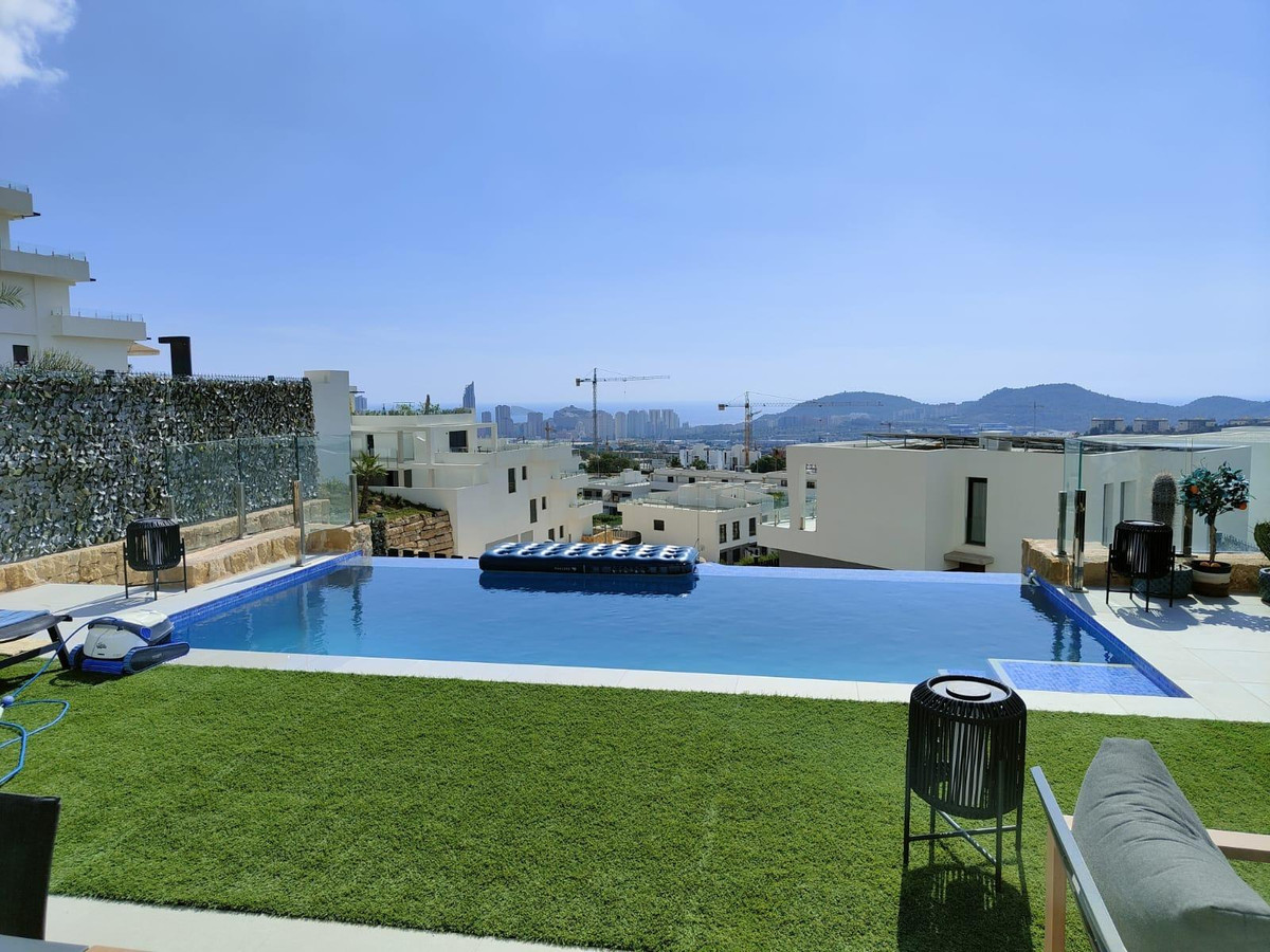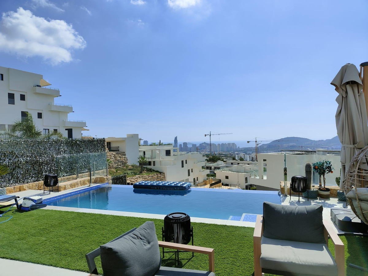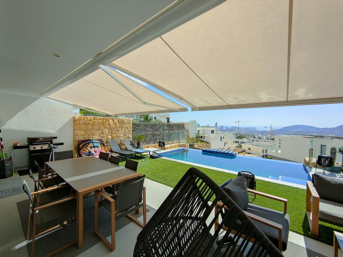 Welcome to your oasis by the sea in the exclusive Camporrosso urbanization. This spectacular 4 bedroom semi-detached villa perfectly combines luxury, comfort and ideal location.Situated in an unparalleled setting, this home offers unobstructed sea views that will take your breath away. Two of the double bedrooms and the spacious living room enjoy these panoramic views, creating a feeling of being in an oceanfront paradise. Imagine waking up every day to the gentle sea breeze and the murmur of the waves in the background.In addition to ocean views, this development boasts an impressive array of amenities that make every day feel like a vacation. The large outdoor community pool is the perfect place to cool off and socialize with neighbors and friends. You also have at your disposal a heated pool to enjoy all year round.For sports enthusiasts, the complex offers a fully equipped gym and outdoor sports machines, as well as paddle tennis courts to keep you fit and active. After a good workout, you can relax in the sauna or enjoy a stroll through the landscaped areas.For families, there is a full playground where children can play in a safe and fun environment.The location of this villa is equally impressive. It is close to the highway to Alicante, making it easy to commute to the city and other destinations. You will also find quality schools, a golf course, supermarkets and all the services you may need within walking distance.This villa is a semi-new jewel, ready to move in and enjoy a lifestyle that many can only dream of. Every corner has been decorated with exquisite taste, with designer furniture that perfectly complement the elegance and luxury that this house offers.If you are looking for the perfect combination of comfort, space, beauty and a privileged location with first class amenities, this semi-detached villa in the Camporrosso urbanization is the place where your dreams come true. Welcome to your new home in the Mediterranean paradise!