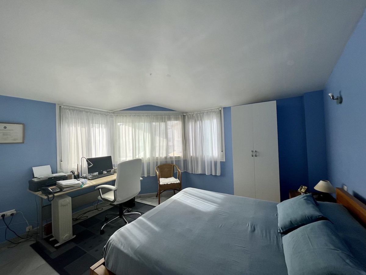 On the upper level there are two bedrooms and a bathroom, both bedrooms have a private terrace. The front bedroom terrace has nice views over the gardens and also a partial sea view.