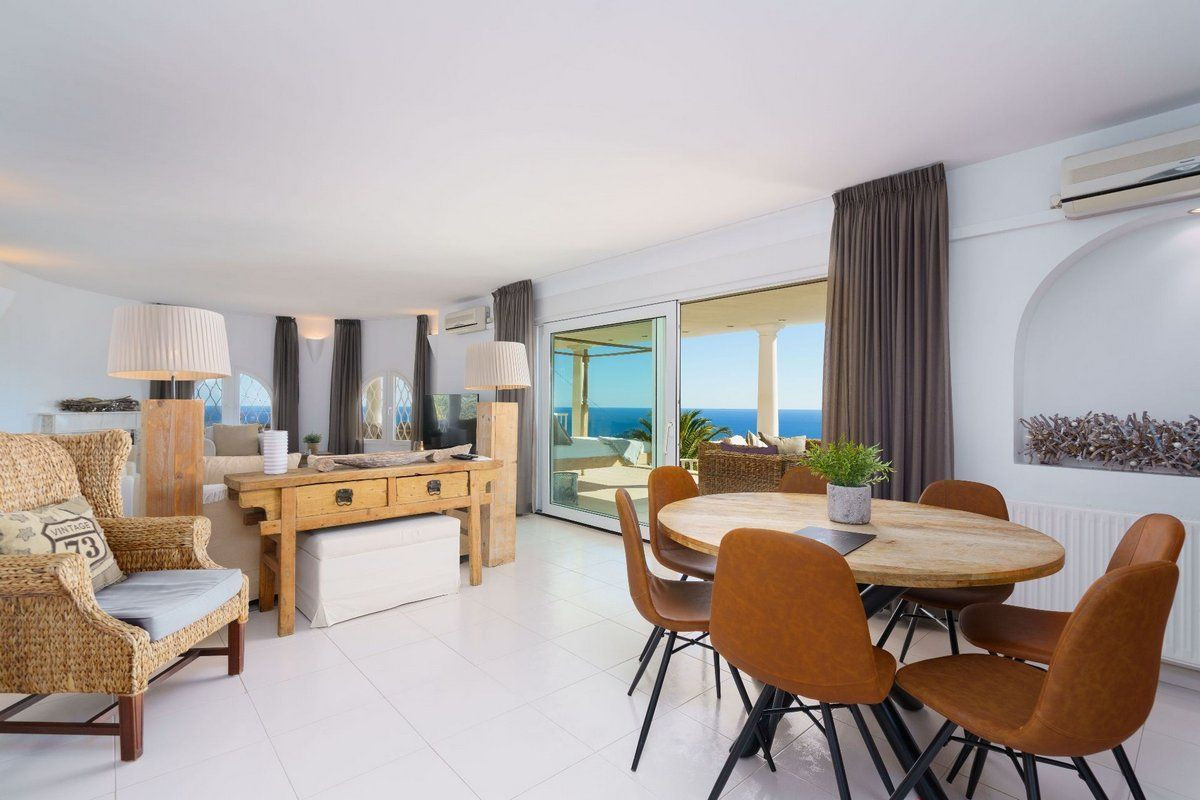 As you enter the villa through the main entrance, you have a direct view of the sea. From here, the entrance hall provides direct access to the well-maintained kitchen with an adjoining dining and living area. In the winter months, this is the ideal place to stay and enjoy the view. There is also direct access to the large terrace and veranda.