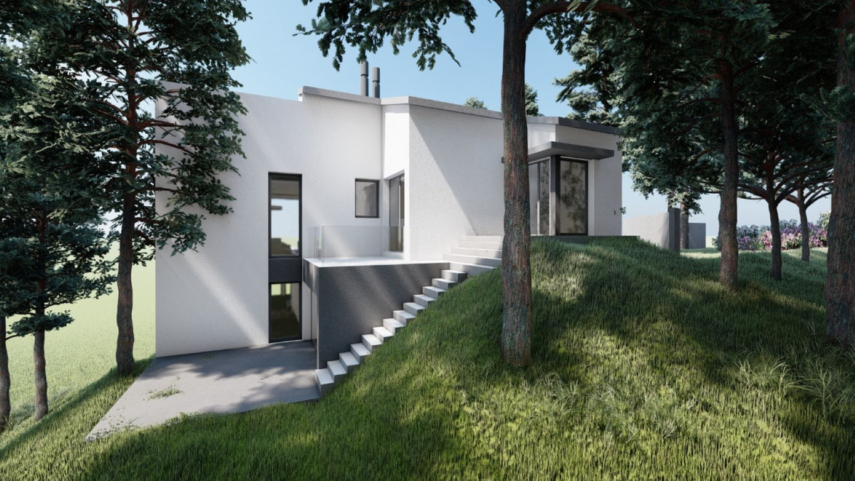* Two further ensuite bedrooms, each with terrace and floor-to-ceiling windows overlooking the sea and forest