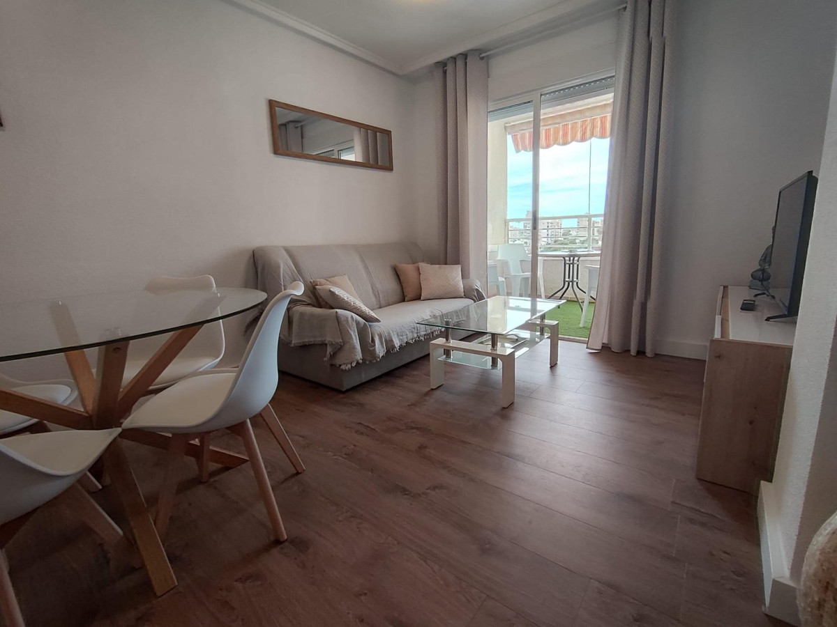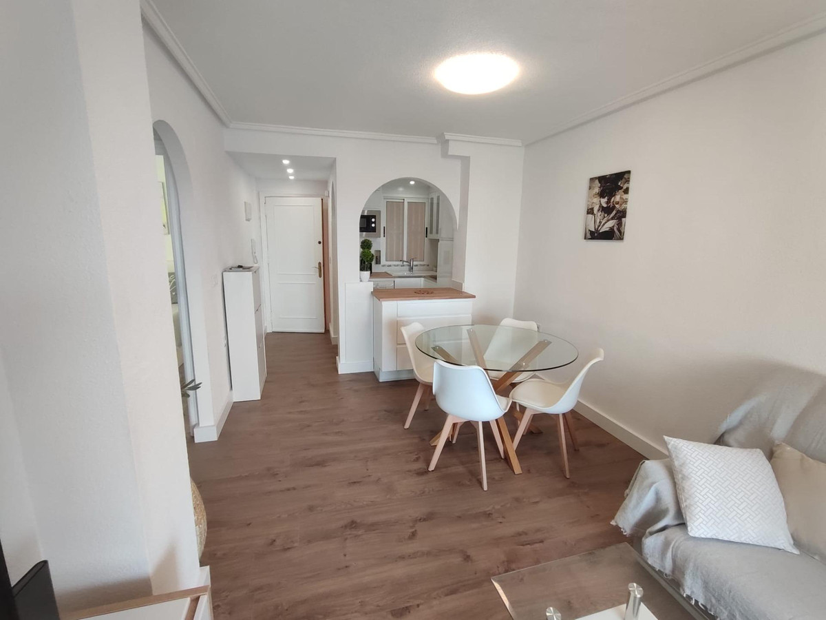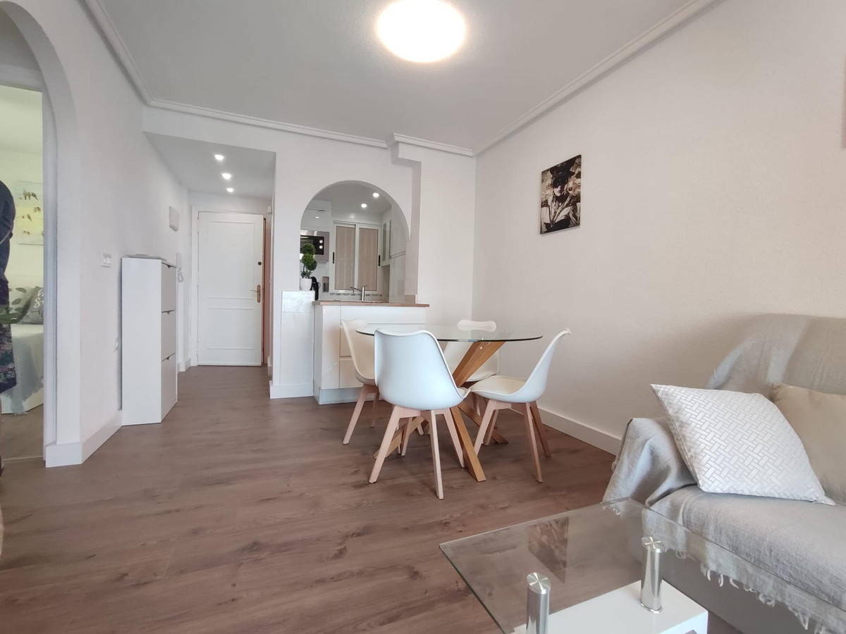Lovely apartment totally reformed in fifth plant with seen cleared. It consists of 2 bedrooms, living/dining room, 1 bathroom with window, equipped and furnished kitchenette.South facing terrace with totally unobstructed views. The price includes all the furniture and decoration that are also new. Communal poolGood house in the area of Nueva Torrevieja