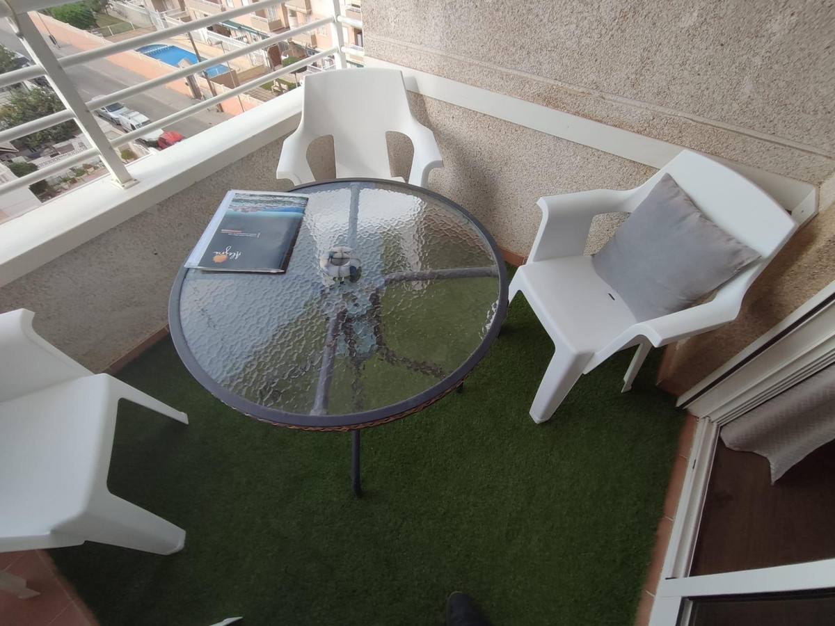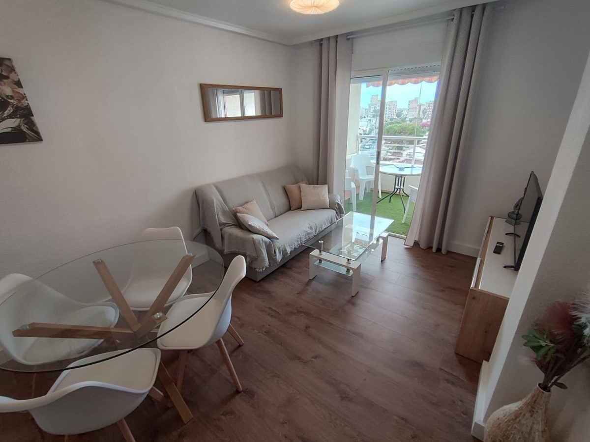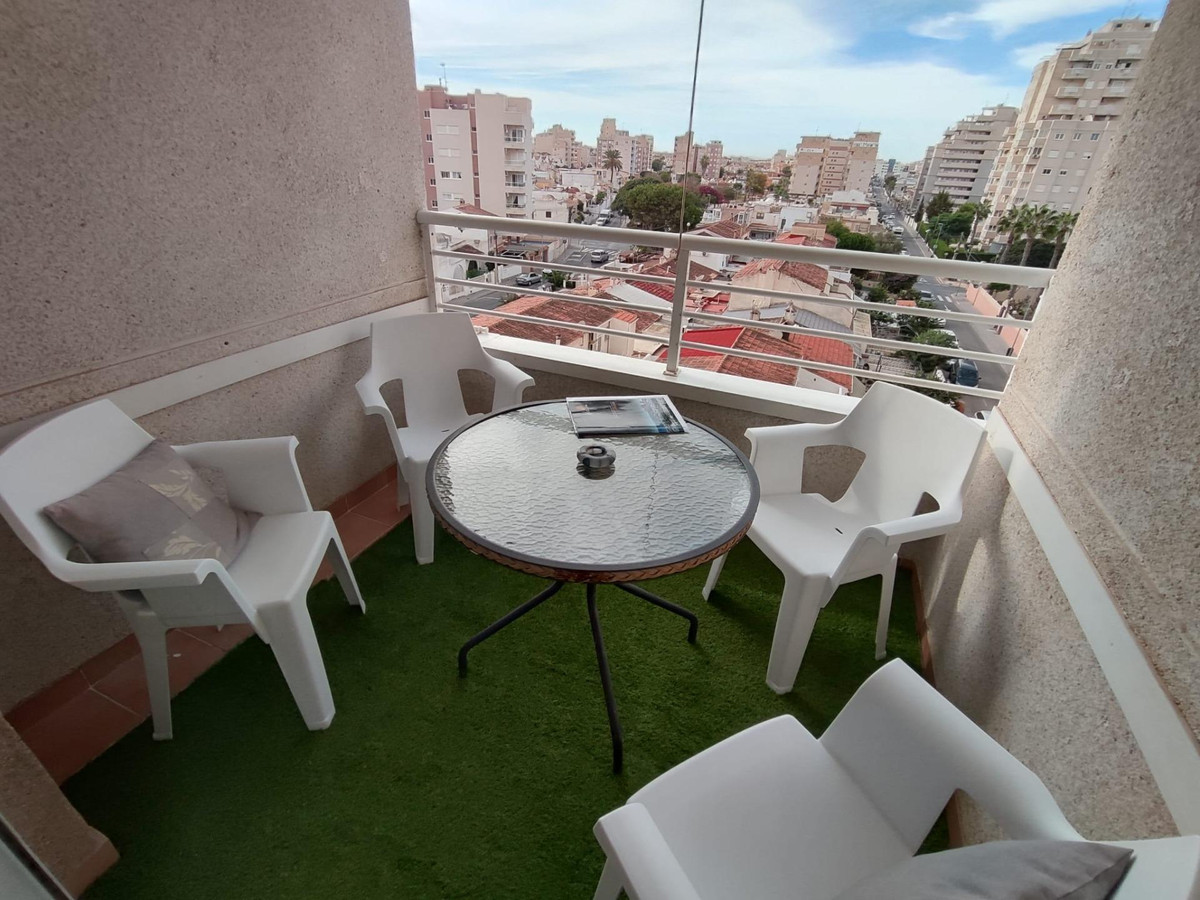 Lovely apartment totally reformed in fifth plant with seen cleared. It consists of 2 bedrooms, living/dining room, 1 bathroom with window, equipped and furnished kitchenette.South facing terrace with totally unobstructed views. The price includes all the furniture and decoration that are also new. Communal poolGood house in the area of Nueva Torrevieja