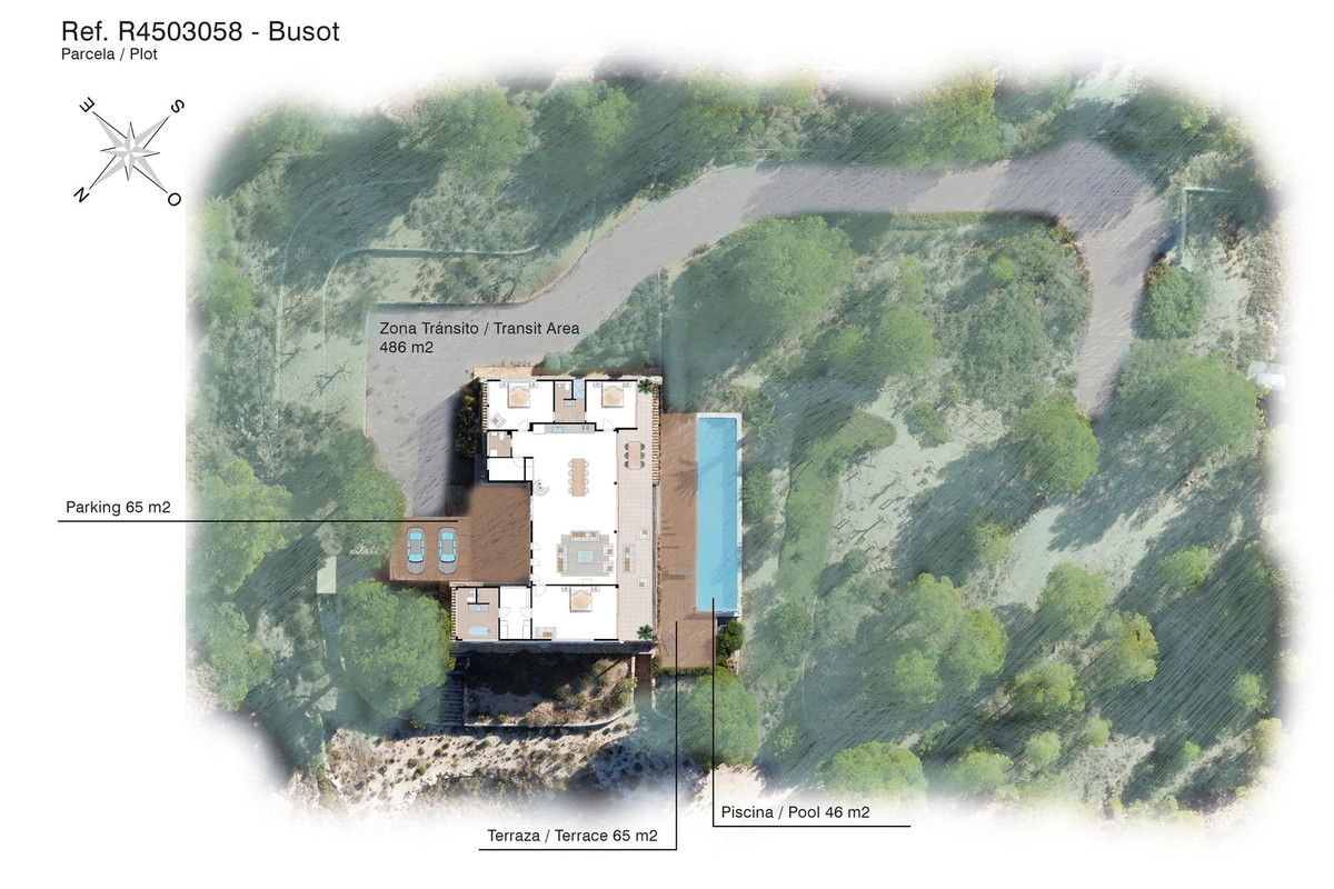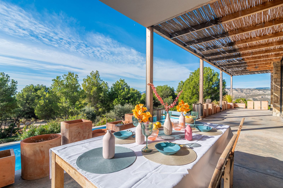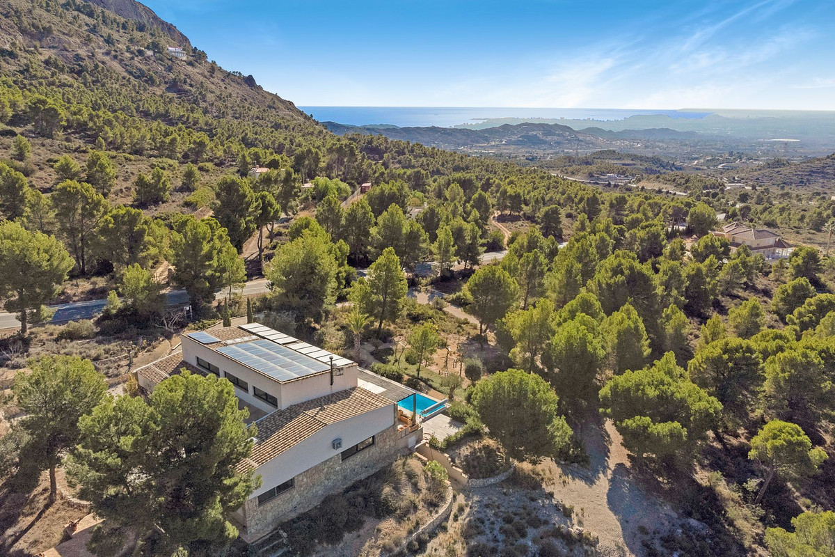 Located at the foot of the Cabeza D'or mountain, this impressive, contemporary residence spans over 250 m² on a private plot of more than 21,000 m². In an enviable natural setting, Villa Natura is just five minutes from the village of Busot, 15 minutes from the beaches of El Campello-San Juan, and 25–30 minutes from Alicante and its international airport.