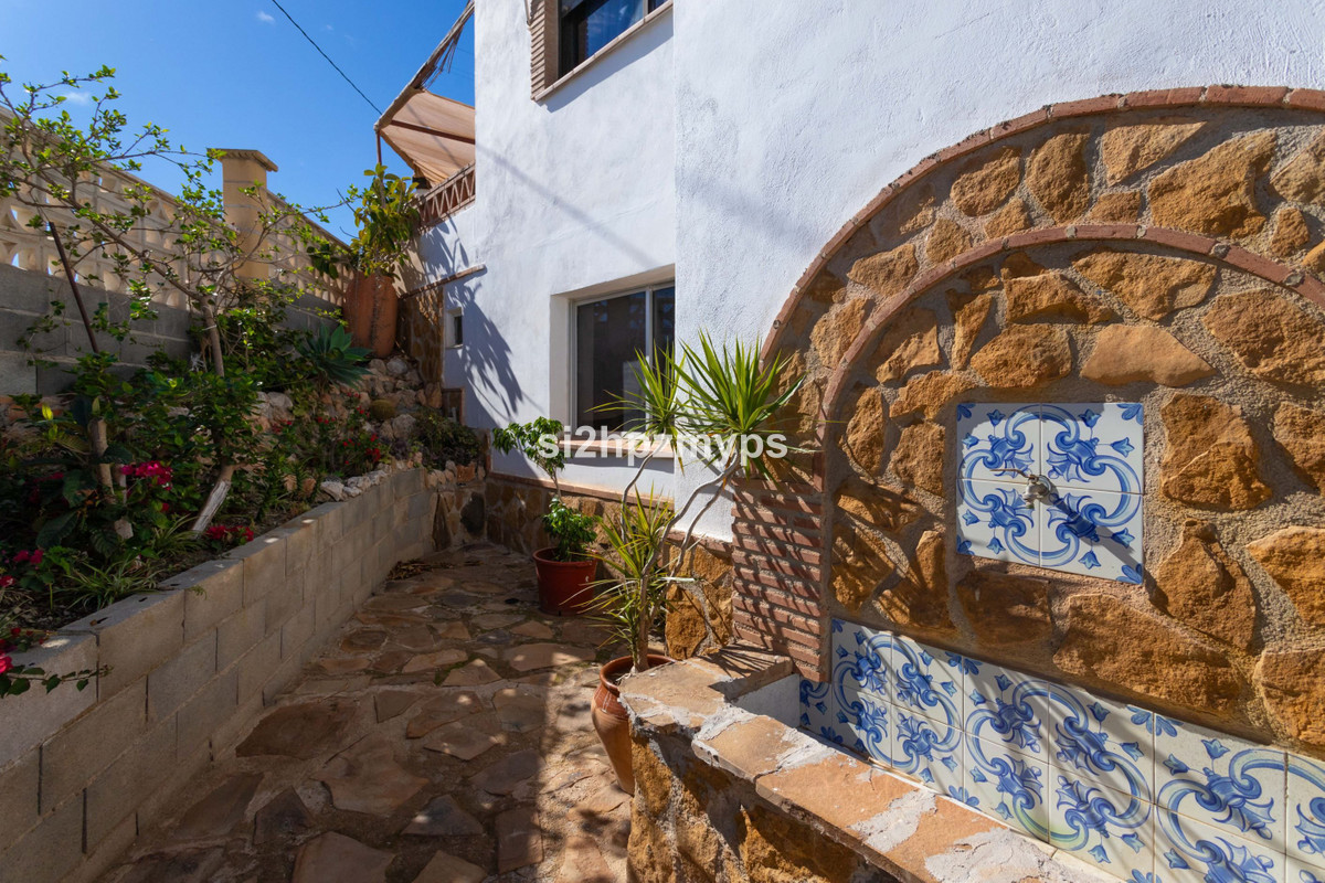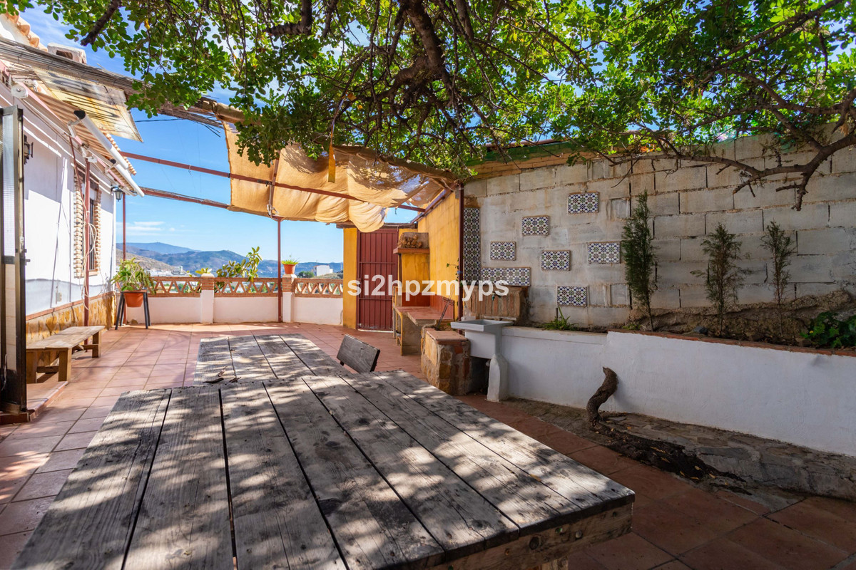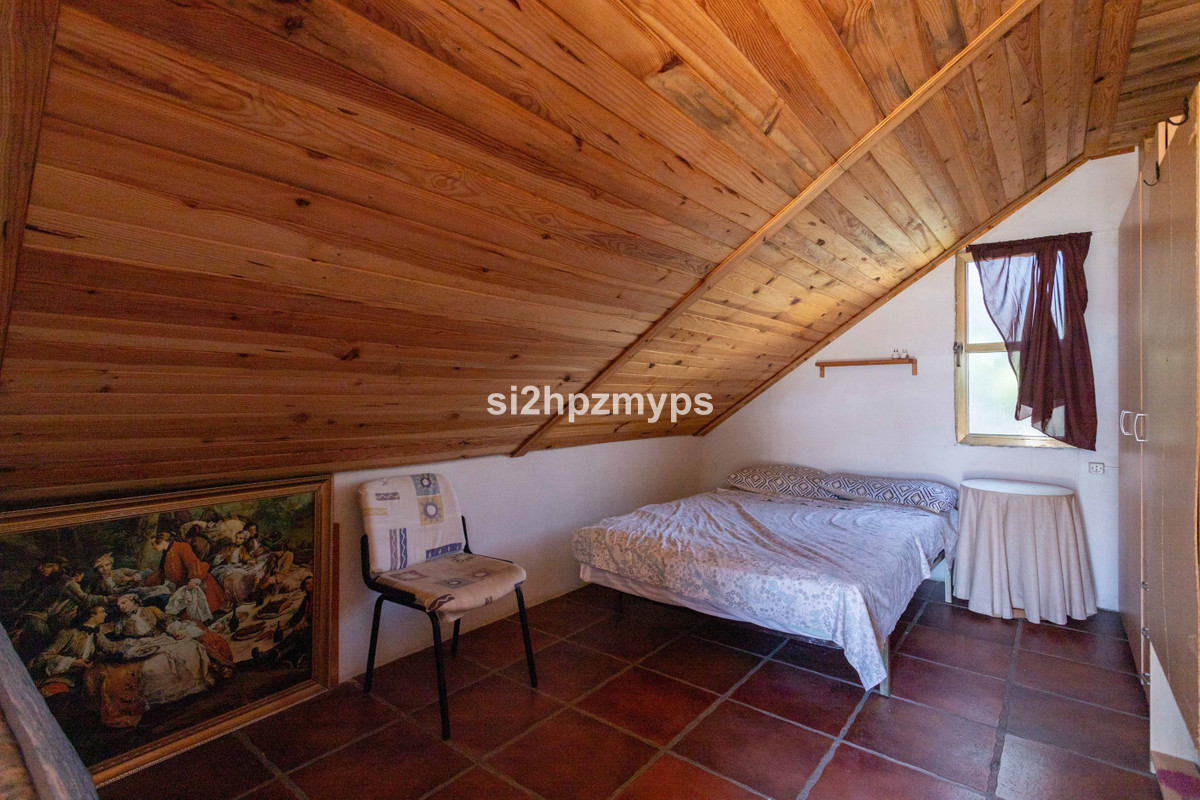Upstairs there is a living room with fireplace and open plan kitchen, three bedrooms and a bathroom. From the kitchen there is an exit to a patio with the 200-year-old algarrobo tree.