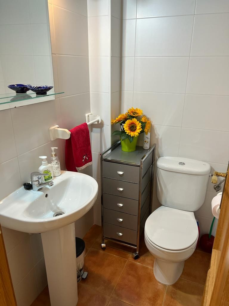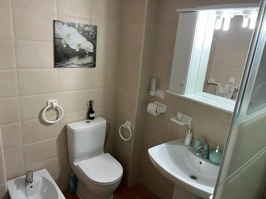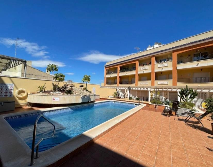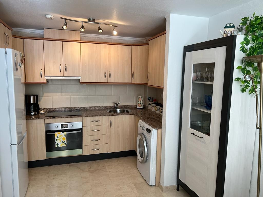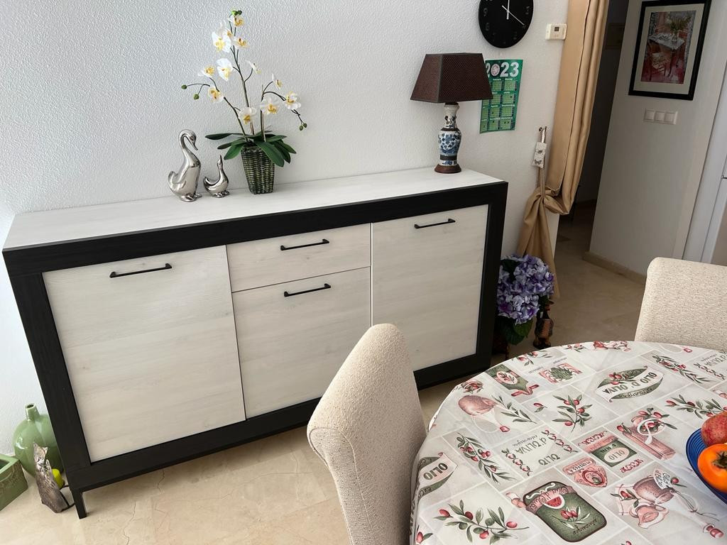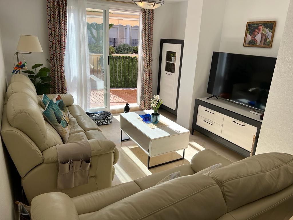 Velkommen til denne charmerende stueetage 2 værelses lejlighed, perfekt beliggende i en førsteklasses beliggenhed. Med en sydvendt orientering er denne lejlighed badet i naturligt sollys hele dagen, hvilket skaber en varm og indbydende atmosfære. Med i alt 67 kvadratmeter byder denne lejlighed på et rummeligt opholdsmiljø for dig og dine kære. Det åbne køkkendesign forbinder problemfrit opholds- og spiseområdet, hvilket giver et perfekt sted til at underholde gæster eller nyde kvalitetstid med familien. Lejligheden har 2 soveværelser, der byder på rigelig plads til afslapning og hvile. De indbyggede skabe giver praktiske opbevaringsløsninger, der holder dine ejendele organiseret og inden for rækkevidde. Træd udenfor på terrassen og fordyb dig i roen i dine omgivelser. Nyd din morgenkaffe eller forkæl dig selv med en aftendrink, mens du nyder panoramaudsigten over den fælles pool og velholdte haver. Bekvemmelighed er nøglen, da denne lejlighed kommer med en privat parkeringsplads, der sikrer, at dit køretøj altid er sikkert. Den fælles pool er det ideelle sted at køle af på de varme sommerdage, mens terrassen giver et privat tilflugtssted til afslapning og udendørs spisning. Beliggende kun en kort afstand fra stranden, kan du nyde solen, sandet og havet på blot 20 minutter. Nærheden til lufthavnen, kun 35 minutter væk, gør rejsen til en leg, uanset om det er for forretning eller fornøjelse. Alle væsentlige faciliteter er kun 5 minutter væk, hvilket sikrer, at daglige fornødenheder er let tilgængelige. Golfentusiaster vil sætte pris på den korte 10-minutters afstand til den nærmeste golfbane. Denne lejlighed er generelt i god stand, så du kan flytte ind og begynde at nyde dit nye hjem med det samme. Det er fuldt møbleret med moderne og komfortable møbler, hvilket gør det nemt at finde sig til rette og sætte dit personlige præg. Inkluderingen af aircondition og husholdningsapparater forbedrer din komfort og bekvemmelighed yderligere. Sikkerhed er en topprioritet, og denne lejlighed har en forstærket dør for ekstra ro i sindet. Derudover er der et opbevaringsrum, der tilbyder rigelig plads til at opbevare eventuelle ekstra ejendele eller sæsonbestemte genstande. Gå ikke glip af muligheden for at gøre denne stueetage 2 værelses lejlighed til din egen. Kontakt os i dag for at arrangere en fremvisning og begynde at leve den solfyldte livsstil, du altid har drømt om. Suma skat €195 om året Fællesskabsbidrag € 175 pr. kvartal