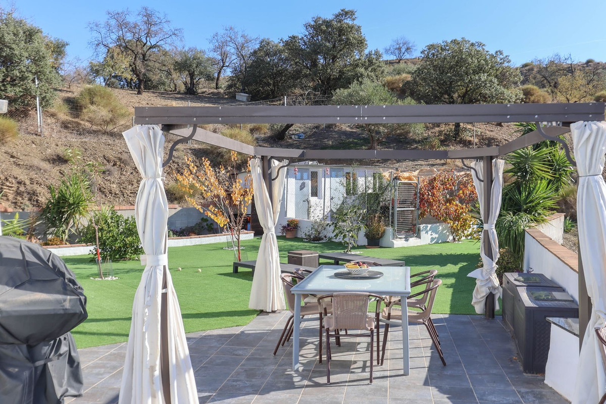 A shaded terrace to the rear of the property welcomes you a necessary cool spot during the summer months. To the right is a separate utility room. Entering into the property you are drawn to the views that are framed by the patio doors and a window to the side aspect framing the view of the village of Yunquera in the distance.