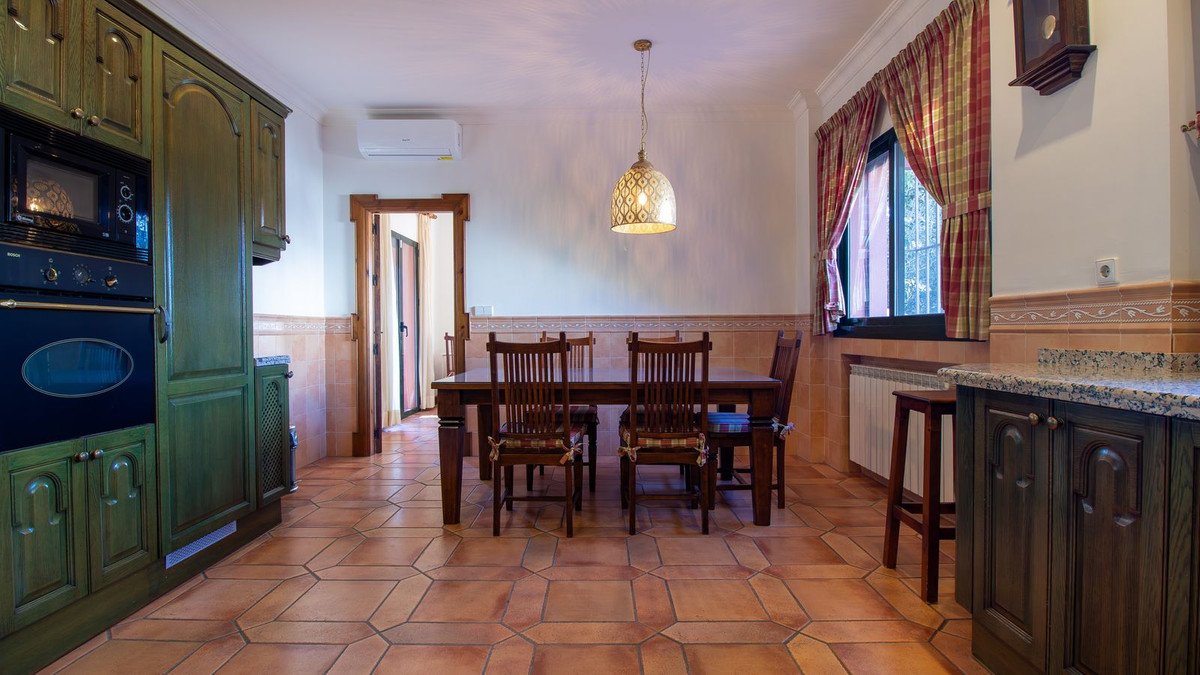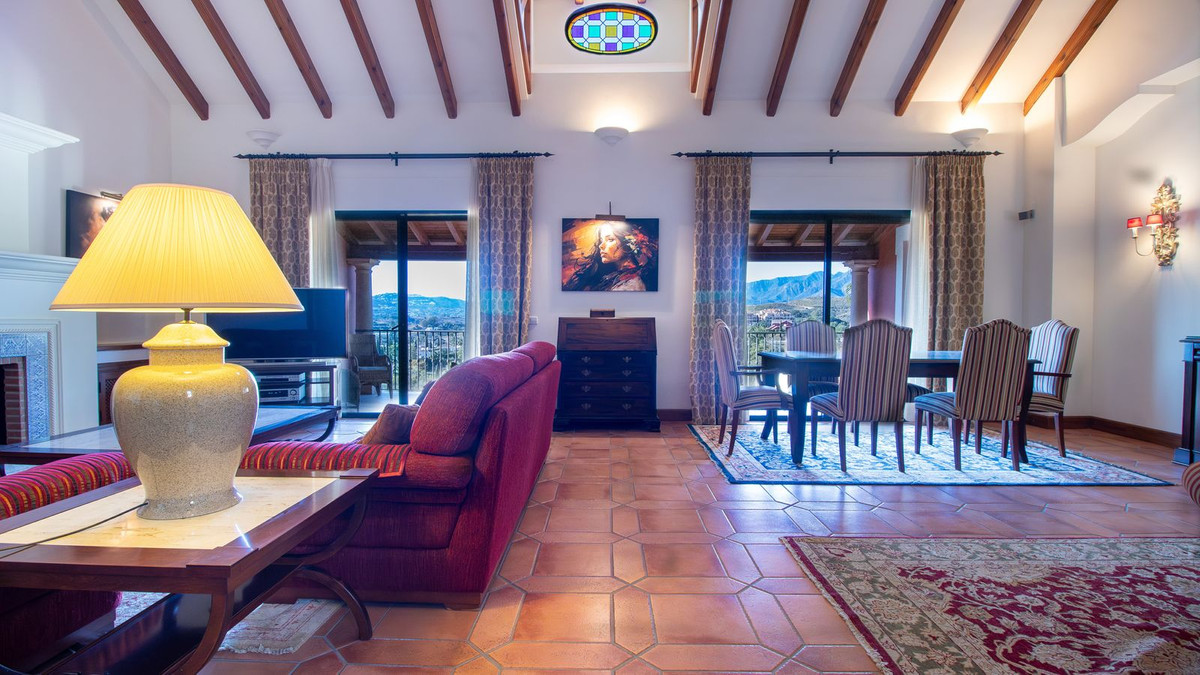 Underholdning og Fritid: Ejendommen inkluderer et dedikeret TV- og spillerum, et privat kabinet og to store terrasser. Udeområdet er en drøm for enhver, der elsker at underholde, med en swimmingpool, grillområde og en bar på terrassen – alt sat mod den maleriske baggrund af golfbanen og bjergene.