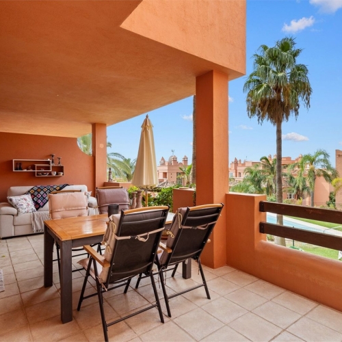Penthouse-lejligheden har panoramaudsigt og ikke kun én, men to indbydende terrasser, hvilket gør den perfekt til afslapning.