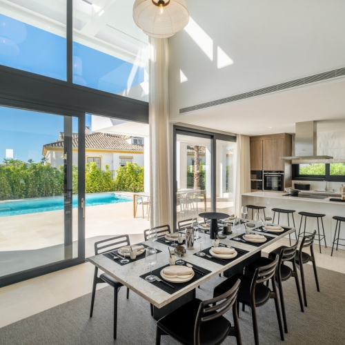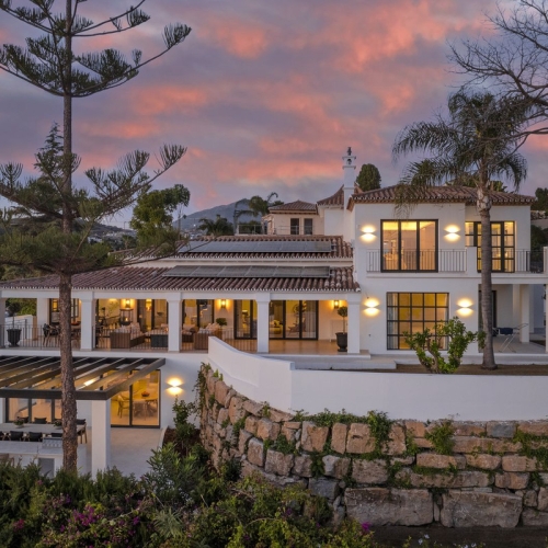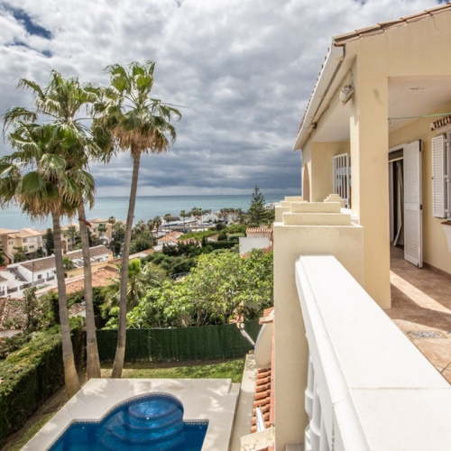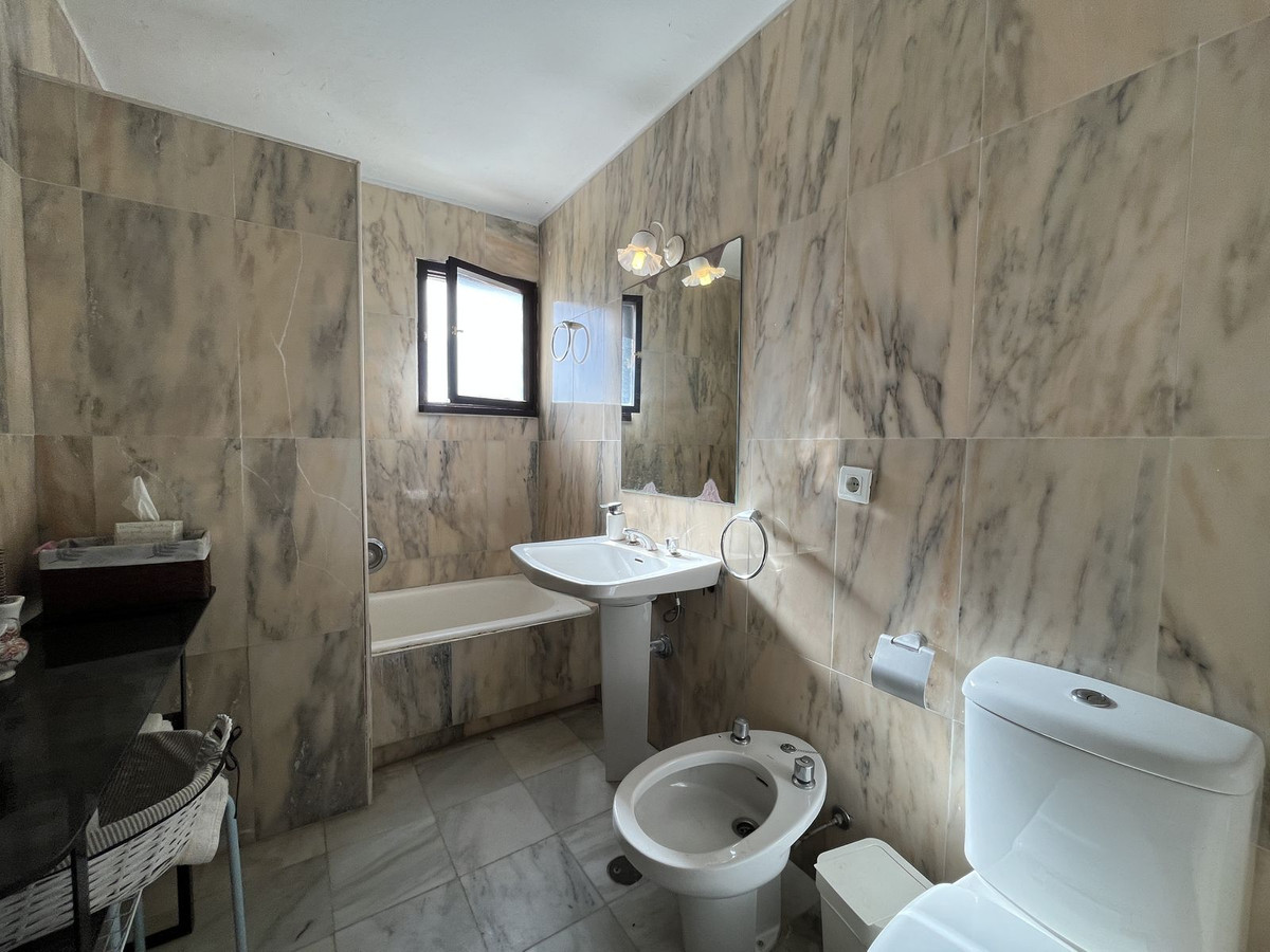 STORSLÅET FRITLIGGENDE VILLA MED SMUK HAVUDSIGT! Beliggende i et boligområde ved stranden, kun 2 minutter fra stranden til fods og 7 minutter i bil fra det historiske centrum af ESTEPONA. Der er gode forbindelser til fods via den smukke kyststi, og det ligger tæt på supermarkeder, skoler og det nye High Resolution Hospital i Estepona. Det har et stort haveområde og rummelige terrasser med smuk PANORAMISK HAVUDSIGT, ejendommen er omgivet af haver og huse med den attraktive designstil fra den berømte arkitekt Aubrey Marcus David og har en SYDLIG ORIENTERING. Huset er fordelt på tre etager. Hovedindgangen til grunden fører til en veranda, hvor indgangen til huset er placeret, som har et opholdsområde i to niveauer, der nyder stor lysstyrke, smuk udsigt til Middelhavet og direkte adgang til terrassen, der grænser op til haven og et stort køkken, på øverste etage og stueetagen er soveværelserne og badeværelserne. Huset blev renoveret for et par år siden og er blevet godt vedligeholdt. Urbaniseringen er meget velholdt og har tennisbaner med kunstgræs, haver, 6 fælles swimmingpools og overdækkede parkeringspladser på grunden. VI ANBEFALER PÅ DET STÆRKESTE DIT BESØG!