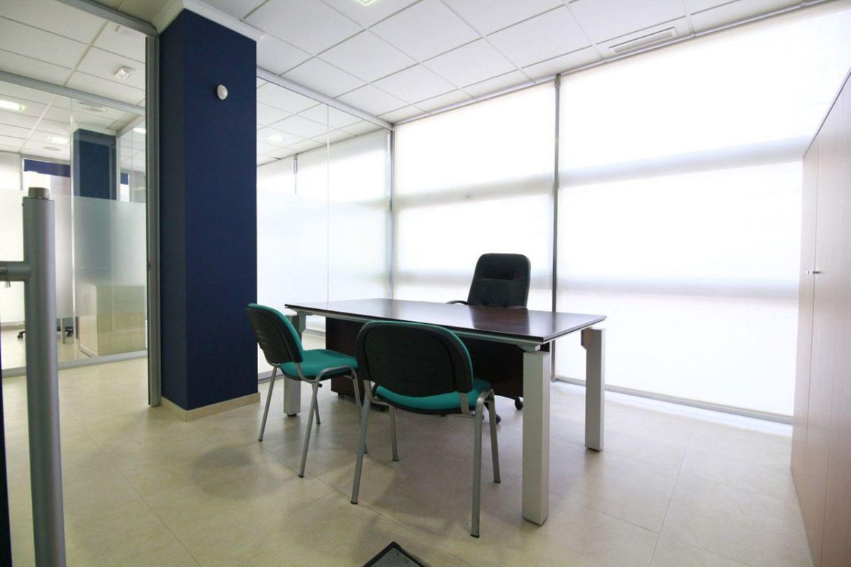 The interior of the premises is perfectly distributed, offering a cozy reception, three offices, a meeting room and a bathroom. Previously, this space was used as a real estate office, so it is equipped with floor-to-ceiling cabinets, office furniture and hot-cold air conditioning, providing a comfortable and functional environment.
