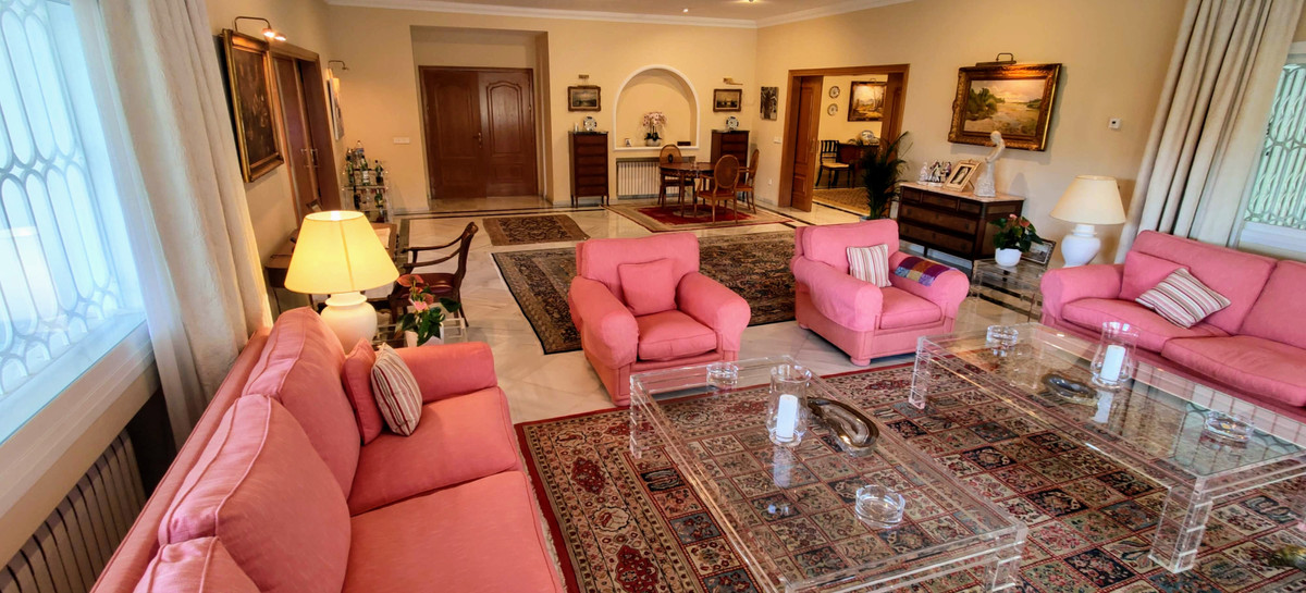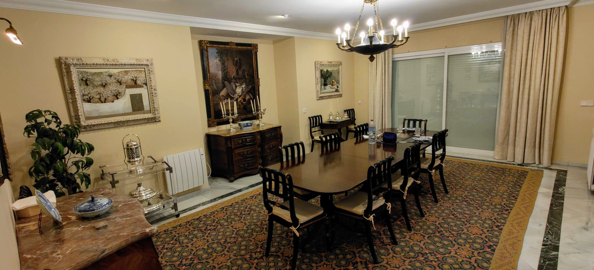 Situated on a tranquil street within the Guadalmina Baja urbanization, this mansion offers an unparalleled lifestyle. Very near the beach and surrounded by amenities, including two 18-hole golf courses, 4-star hotels, a Bilingual School, and a shopping center with various services, it epitomizes luxury living. Merely 4.9 km from Puerto Banús, the residence occupies a generous plot of 3,853 square meters, with a substantial portion dedicated to private parking, accommodating up to 20 cars. The driveway, spanning 965 square meters, boasts surface drainage for optimal functionality.