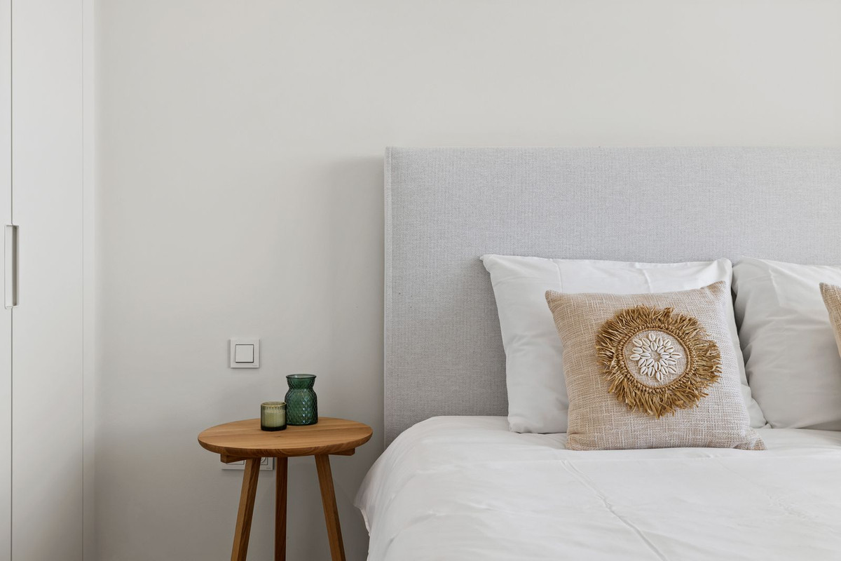 This beautiful 2 bedroom apartment near Marbella is fully move-in ready and has 2 bathrooms. The property has 73,14m2 of usable space and a terrace of more than 28m2 which is South-West facing and overlooks beautiful mountain and sea views. There is also an underground parking space and storage room. The property has quality finishes and is fully furnished with quality ibiza style furniture by Homeinspain.