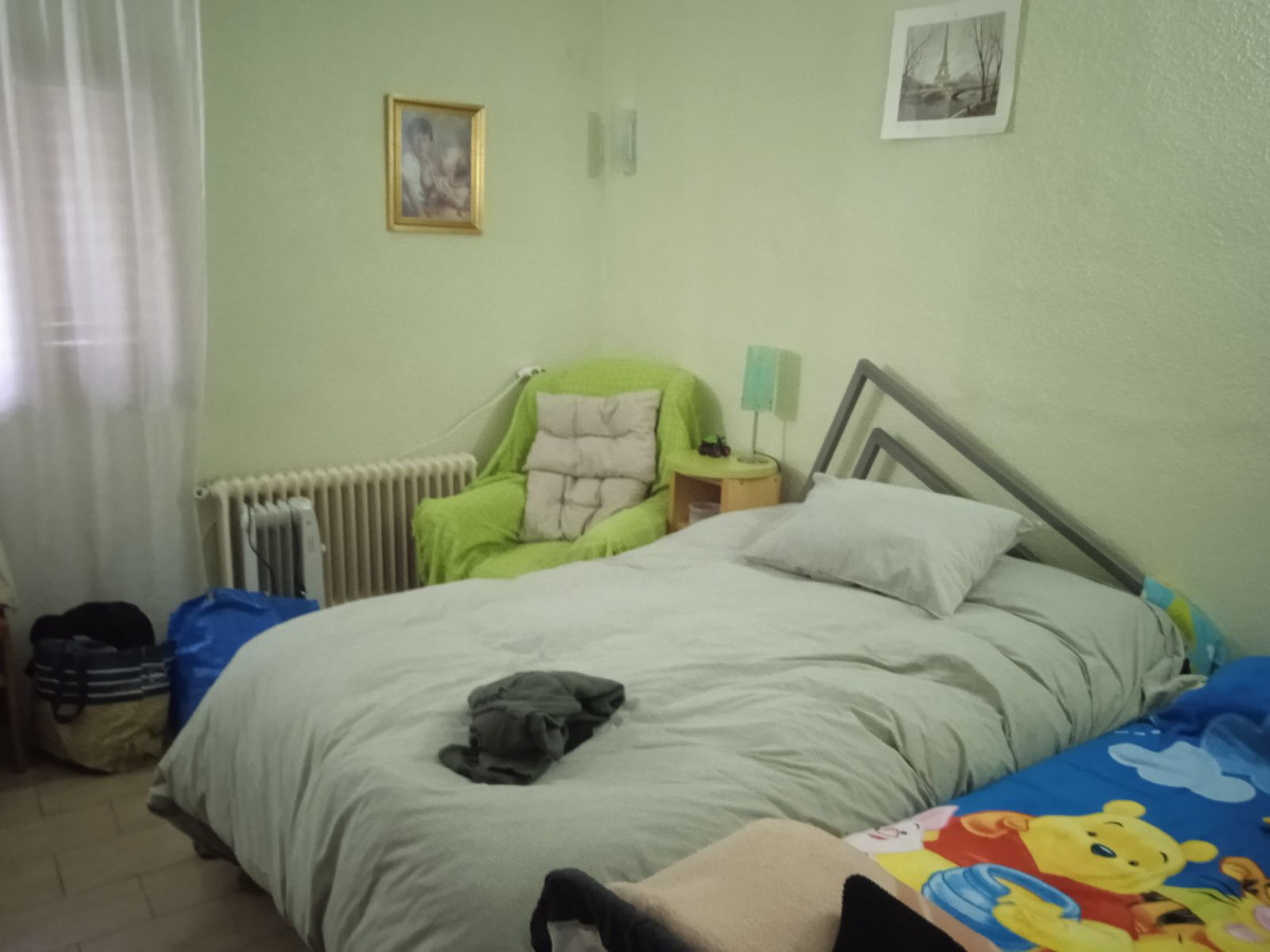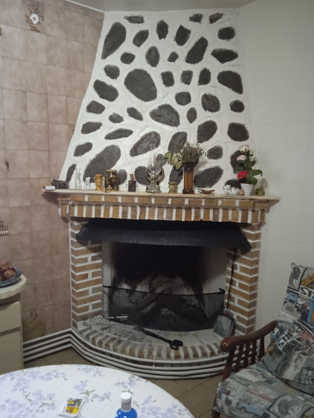 To the right of the hall, a spacious dining-living room awaits, with double doors opening to the front garden. The fully equipped kitchen, complete with an open fireplace and a separate pantry housing the oil-heated water boiler. At the end of the hallway, a connecting door leads to a double-sized garage, equipped with an open fireplace that serves as the burner for the oil-fuelled central heating.