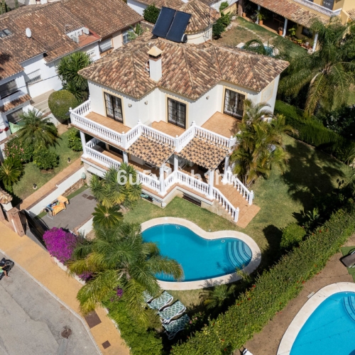 This exceptional villa in Sierrezuela offers a private setting and unbeatable panoramic sea and golf views from the upper level and rooftop terrace. Originally built in 2014, the villa has recently been refurbished, including a modern kitchen and underfloor heating in the bathrooms. A driveway with a secure, automatic gate leads to the the private garage and a front patio with additional parking for 2 cars. An elegant staircase leads from the patio to the main entrance. The hall on the main floor leads to a generous sitting and dining area with a fire place and access to a small terrace. The large, modern kitchen boasts sleek finishes and convenient access to the pool area and a back garden with BBQ area, ideal for alfresco dining. The main floor also features a guest bedroom with an en-suite bathroom, an office, and a guest toilet. The first floor comprises four bedrooms, including the main bedroom with an ensuite bathroom and terrace. The rooftop terrace offers unparalleled panoramic views of the sea and Mijas Golf, providing an idyllic setting for relaxation and entertainment. The lower level of the villa present additional living space comprising three bedrooms, a living room and a small kitchen, offering potential for various lifestyle needs. Outside, the villa boasts a large covered terrace, a garden with a large pool, and a back garden with a BBQ area, perfect for enjoying the Mediterranean climate in style. Situated in the beautiful residential area of Sierrezuela, only a short drive to Fuengirola town, the beaches, and Mijas Golf, this villa offers the perfect blend of serenity and convenience, making it an ideal family home.