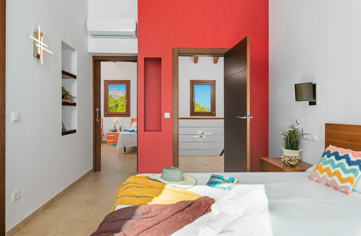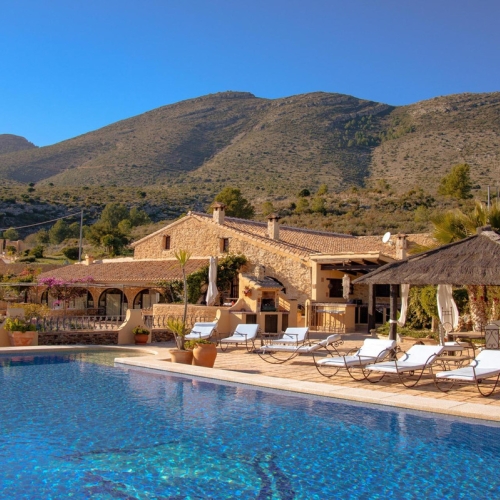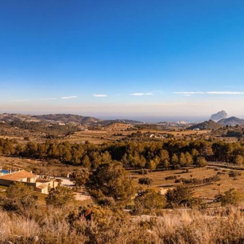 Exceptional Villa with private pool located in Calpe, with spectacular views of the sea and the mountains, and a lot of privacy. Located in the Oltà area, a less crowded urbanization, very quiet and sunny, as well as cool, since it is located 200 m above sea level. Surrounded by forests and hiking trails. This villa, unlike conventional villas, was built in 2010 with ecological materials and designed with bioclimatic criteria, which allows the home to maintain a comfortable temperature and humidity throughout the year, with hardly any use of heating or air conditioning. However, for greater comfort, hot-cold pumps have recently been installed through ducts on the ground floor and with splits on the upper floor. It is built following the patterns of typical Mediterranean farmhouses. This villa is built on a plot with an area of 10,030 m², with a completely flat surface and fenced throughout its perimeter of 1,350 m2 and the rest of the plot forming terraces with the possibility to plant fruit trees or enable that area for horses, etc. The house has a constructed area of 230 m² with 80 m2 of basement. Its interior is decorated in a modern style contrasting with the rustic style of the exterior of the house. You can enjoy its spacious living-dining room and its covered and glazed terrace. Villa Natura has internet connection through WIFI. Ground Floor: (Access via a step). Large living room-dining room, furnished with modern and comfortable furniture. From the living-dining room you have direct access to the covered and glazed terrace and the pool and barbecue area. On this floor is the American kitchen, very functional and with an exclusive design, equipped with appliances; Next to the kitchen are the laundry and pantry. This floor has 2 double bedrooms and 1 bathroom with shower, toilet and sink. First Floor: (Access by internal stairs): On this floor is the master bedroom, with wonderful views of the sea and the Peñón de Ifach, a en-suite bathroom with large shower, WC and sink and a large dressing room that could also be used as a bedroom. This same floor has another double bedroom and an en-suite bathroom with bathtub, WC and sink. Exterior: The house is surrounded by a large plot with an area of 1350 m², completely flat and fenced around its perimeter, it has a different garden spaces, both with native plants and fruit trees. It also has a covered and glazed terrace, with views of the sea and the pool. The pool has dimensions 8x4, with Roman stairs and is shallow (0'90-1'65), where you will enjoy a pleasant swim while contemplating the views of the sea and the mountains. Note that the pool chlorination system is also ecological. Around the pool, you can enjoy a large and comfortable area of artificial grass, ideal for sunbathing, and which has an outdoor shower. Large parking area on the same plot for 3-4 vehicles. Distances: Located 4 km from Calpe, 5 km from the "Arenal-Bol" beach and main promenade, 4 km from several supermarkets and 3 km from An urban bus stop and the Denia-Alicante regional train.