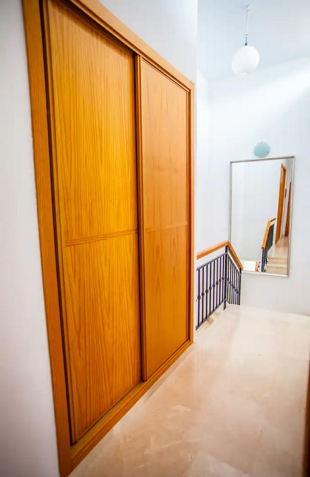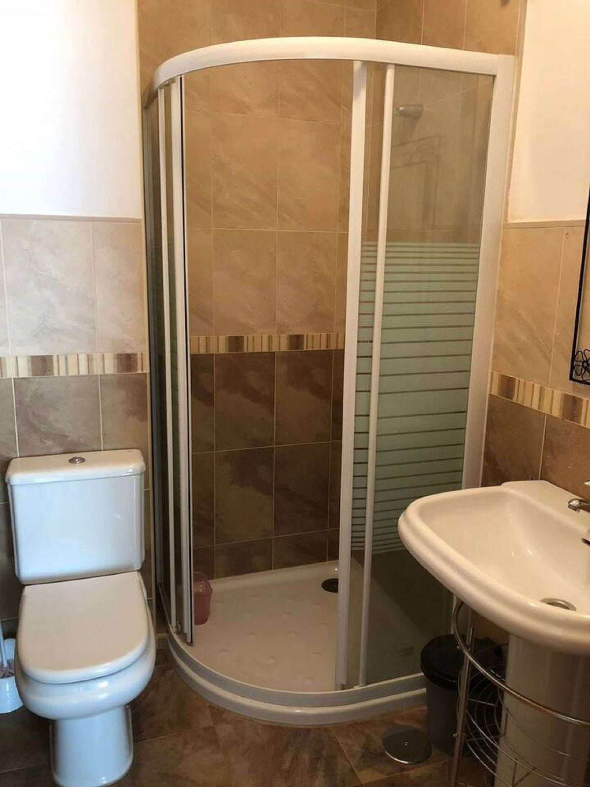 The house has a nice spacious sitting room with wood burning fireplace, large kitchen and a guest toilet on the ground floor.