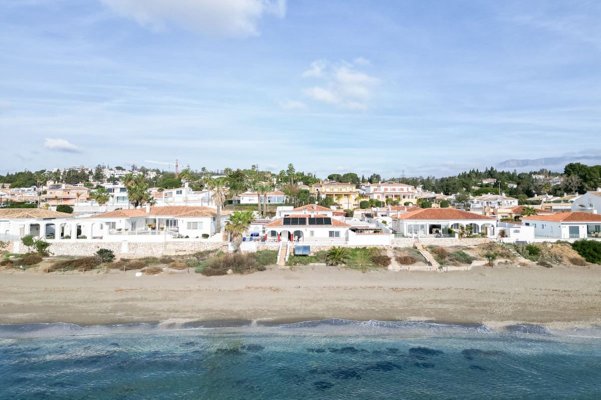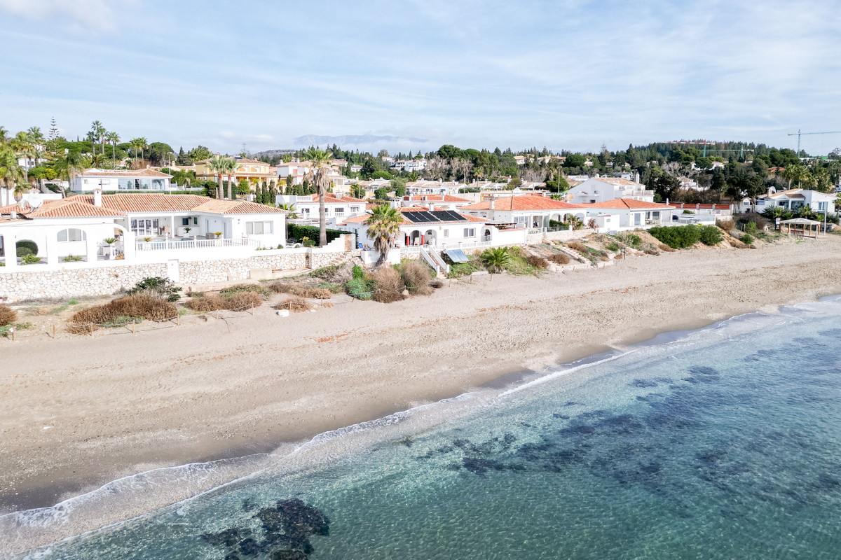 The villa is located on the beachfront, offering stunning sea views with its own access to the beach. In addition, it has a large private terrace, from where you can enjoy the views and relax outdoors.