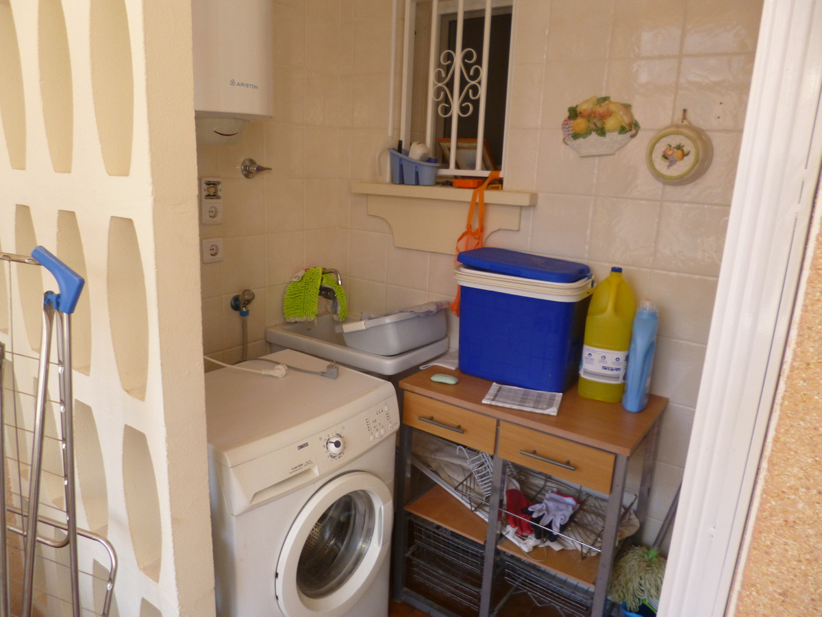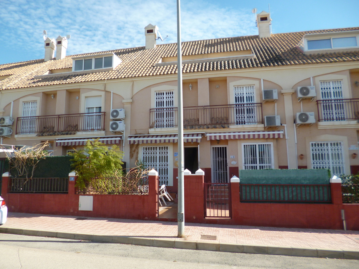 We are pleased to offer this Large 3 bedroom 2 bathroom townhouse, with an integral garage and community swimming pool. The property is located in La Florida, overlooking the parkland between the Emerald Isle and the La Florida commercial area of shops bars and supermarket. The front garden facing west gets afternoon sun, the garden is mostly laid to tiles with a shrub and flower boarder, the living / dining room is a good size with WC and separate modern fitted kitchen, galley style leading to the utility room and 2nd lounge or another dining room to the rear. Also from the living room is a staircase leading downwards to the large private garage. Going upstairs from the front door is a family bathroom between two double bedrooms each with ceiling fans, fitted wardrobes and views of the park. On the top floor is the master bedroom with a small solarium to the front and the rear, the rear receives morning sun and the front afternoon sun, the communal swimming pool is a short walk of 50m2.