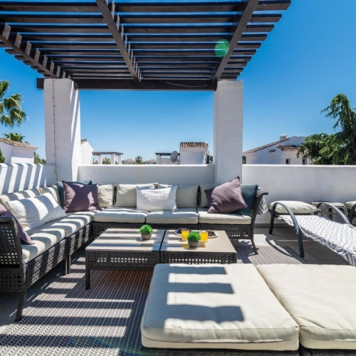 Okay, don't look any longer. We have the most exclusive duplex penthouse in Nueva Andalucía. This property offers everything anyone looking for in this area of Marbella. Close to the Golf Course of Los Naranjos, with the tranquility and stillness that this gives, near all kinds of services and leisure areas and a few minutes from Puerto Banus.