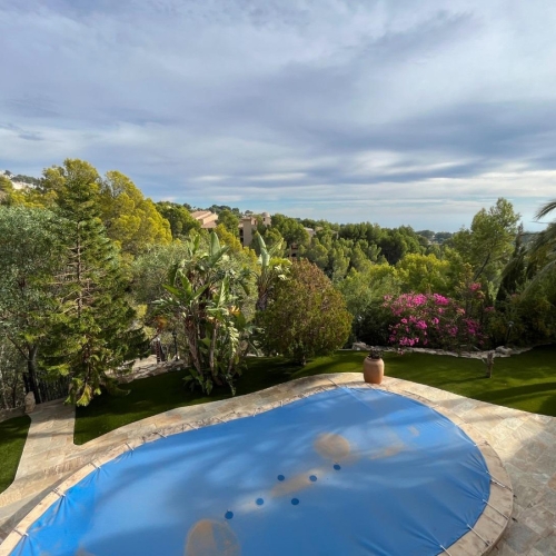 "Villa with Panoramic Views and Great Potential in Altea Hills"We present you an exclusive villa with exceptional potential located in the prestigious area of Altea Hills. Built in 2007, this impressive property has a built area of 450 square meters and sits on a 1,000 square meter plot of land, providing ample space for creativity and renewal.The villa is spread over two floors and offers five spacious bedrooms, three of which enjoy stunning sea views. Plus, you'll find five bathrooms that add comfort and privacy for the whole family. The villa has a large independent kitchen and a generous living-dining room that opens onto a terrace of one hundred square meters, the perfect place to enjoy meals outdoors and admire the panoramic views of the sea and the Altea valley.The property also includes a garage with capacity for two cars and three additional parking spaces, making it easy to receive guests. The home features amenities such as a cozy fireplace, built-in wardrobes, several walk-in closets, a gallery, a storage room, and ample garage space to meet all your storage needs.The villa has its own swimming pool, surrounded by a garden offering an idyllic setting to relax and enjoy the outdoors. Altea Hills is an exclusive community that guarantees 24-hour security and controlled access, giving you the peace of mind you deserve.This property is located just 10 minutes drive from the beautiful beaches and the charming center of Altea, known for its picturesque atmosphere and renowned restaurants. If you are looking for a renovation project in a prestigious location, this villa is the perfect choice. Don't miss the opportunity to transform this villa into the home of your dreams! Contact us today for more information or to schedule a showing.