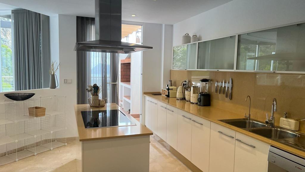 Elegant villa in Altea la Vella with sea viewsDiscover this residential gem located in the quiet and exclusive area of 'Alteart'. Just 50 minutes from Alicante-Elche Airport and 1.5 hours from Valencia Airport, this villa offers the perfect location for quiet family life. In addition, it is just 10 minutes from the beautiful beach of Altea.**Featured Features:**- 3 Floors- Private garage with space for 2 vehicles- 4 Bedrooms- 4 Bathrooms- Elevator- Large Terrace with Balcony- Private pool- Private BBQ Area**Exceptional Amenities:**The house has central heating and air conditioning to guarantee your comfort in all seasons. Fully furnished with new and modern furniture, this property offers an elegant and welcoming space.**Strategic location:**The proximity of several schools in the area makes this chalet the ideal choice for families. Furthermore, for foreign buyers, the acquisition of this property offers the opportunity to obtain a residence permit as an investor.**Interior distribution:**Main floor- Kitchen fully equiped- American-style living-dining room- Access to the large terrace with views of the sea, Benidorm and Altea. The terrace includes a private pool and barbecue area.Second floor- 3 Bedrooms with private bathrooms- Children's areaLow levelBalcony accessGarage accessService area with washer and dryerThis property is a perfect fusion of comfort, style and location. Don't miss the opportunity to call this chalet your home! Contact us for more details and a visit.