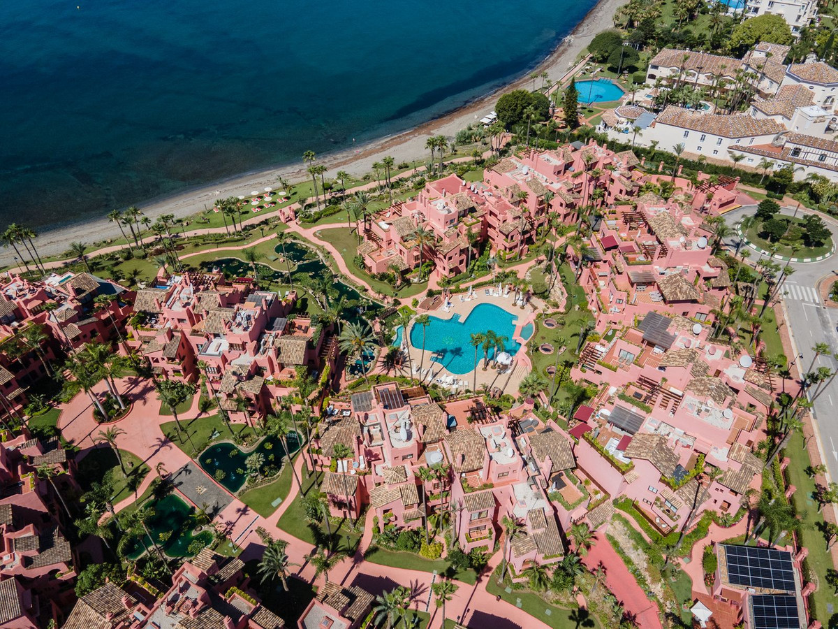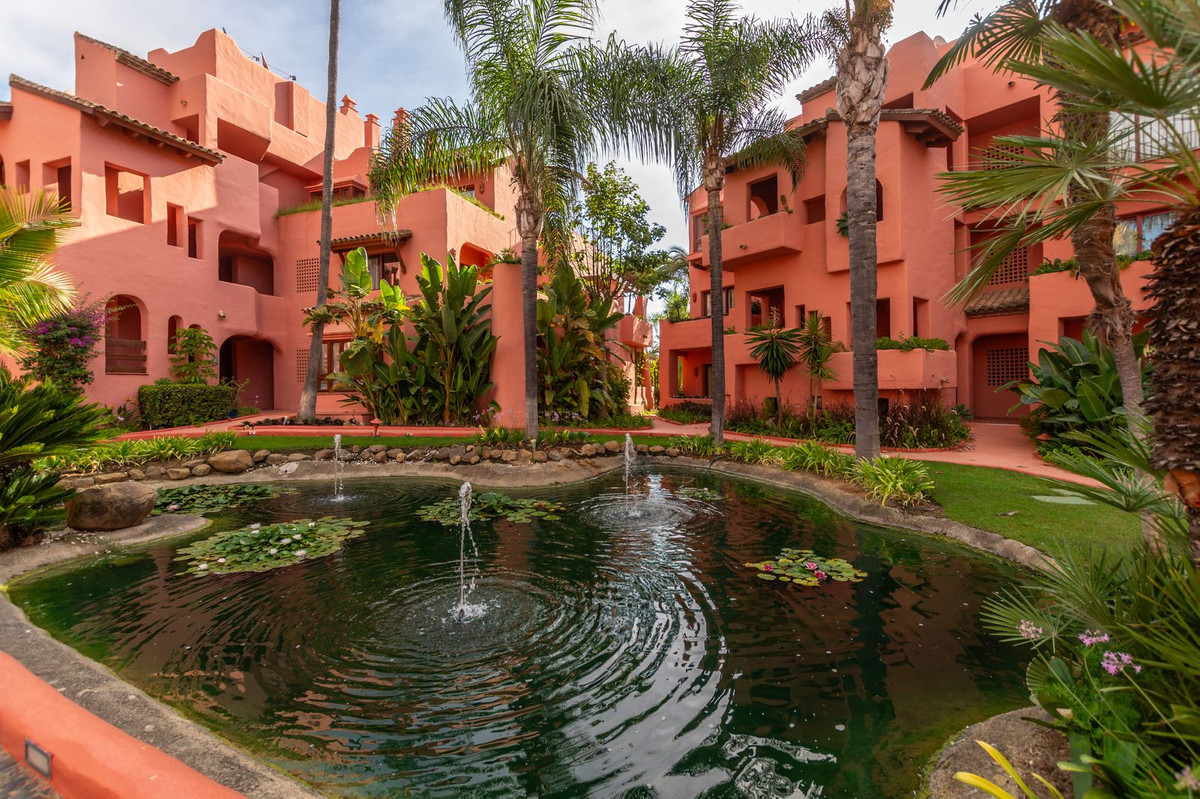 The community offers round-the-clock security and impeccably landscaped tropical gardens, complemented by two outdoor pools featuring cascading waterfalls and artificial lakes. Residents also have access to a well-equipped gym and relaxing sauna facilities. Just a stone's throw away lies the beachfront promenade, while upscale dining establishments and renowned 5-star hotels such as Las Dunas and Ikos Resorts are within easy walking distance.
