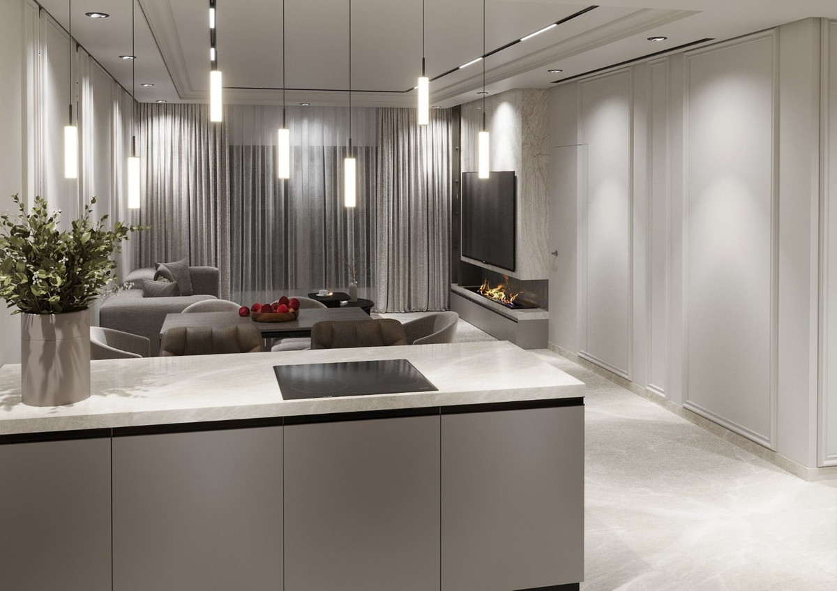 Inside, the apartment showcases a newly designed open-plan kitchen and living area, meticulously crafted with meticulous attention to detail. Expansive windows afford uninterrupted vistas of the azure Mediterranean Sea. The interior is further enhanced by luxurious amenities, added conveniences include underground parking and a storage unit.