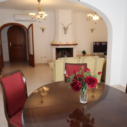 Attractive villa, completely reformed, located in the prestigious Cometa Carrio area of Calpe. Immersed in the greenery of a 750m2 garden, 220m2 of built-up area and 210m2 of living space, this villa provides 4 spacious bedrooms, 3 luxurious bathrooms, south orientation and mesmerising views of the mountains and the town, creating an atmosphere of true tranquillity.With thorough renovations inside and out, the house harmoniously combines cosiness and functionality. The main floor offers a bedroom, a bathroom and a spacious living-dining room with an open kitchen fully equipped with high quality appliances and elegant design details. The possibility of creating an open kitchen for a barbecue with seating area adds to the uniqueness. The first floor features a master bedroom with walk-in wardrobe and en-suite bathroom, and two additional bedrooms with a shared bath. Large windows in each room fill the space with natural light and provide magnificent views.The patio offers an expansive terrace with panoramic mountain views. A beautiful garden with many plants and fruit trees, a swimming pool and parking for two cars give the villa a unique character. In addition to air conditioning, fireplace, solar panels, built-in wardrobe and motorised gate, the house is equipped with an alarm system, armoured door and double glazing for maximum security and energy efficiency.With easy access to Bassetes beach just 1.5km away, this villa is in pleasant proximity to the sea. The surrounding area has an abundance of shops, restaurants and entertainment, with the historic centre and lively marina of Calpe just a short drive away. This property is not just a house, but the realisation of your dreams!