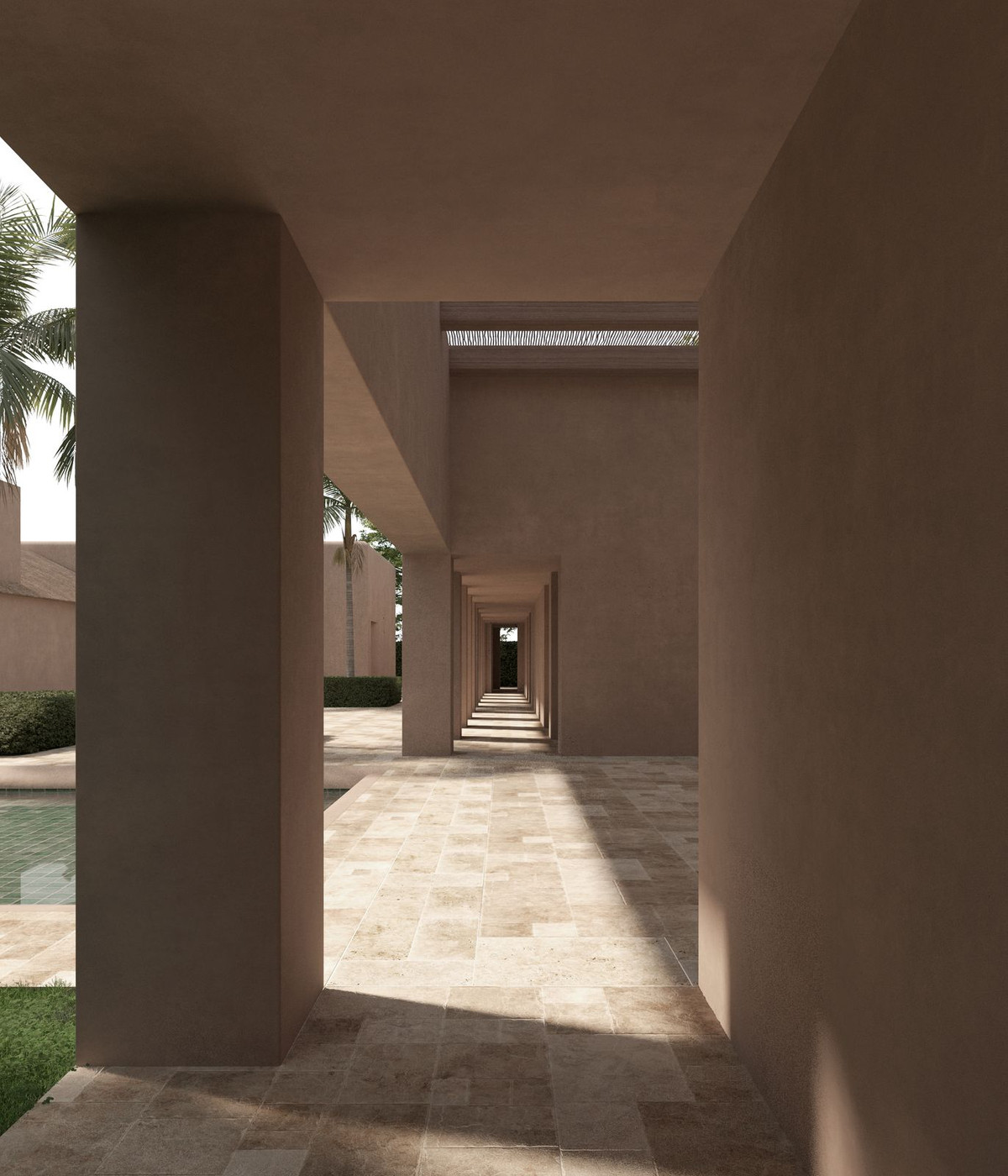 The residence, known as VILLA SANTIAGO, uses symmetries, courtyards and classical rhythms, combined with contemporary spaces and cutting-edge technology, such as pocket windows that connect the interior and exterior, transforming the spaces into porches.