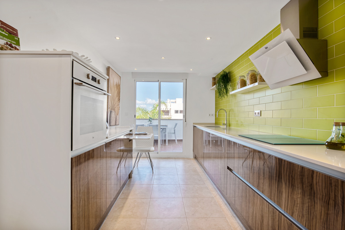 Three bedroom penthouse for sale in Javea only two minutes' walk from the Arenal beach with all amenities within reach. Located in a charming building with lift access and a tranquil communal pool, the property is distributed over two floors with the first floor consisting of two double bedrooms, a bathroom, a large kitchen and spacious lounge/dining area, both leading onto the front terrace, enjoying beautiful panoramic views. The interior staircase takes you to the master bedroom with an ensuite bathroom and gallery, leading to the very large roof-top terrace where you can enjoy stunning views. This property is a fantastic investment opportunity with lots of potential, also making for the perfect getaway escape or even full-time residence due to it´s prime location.